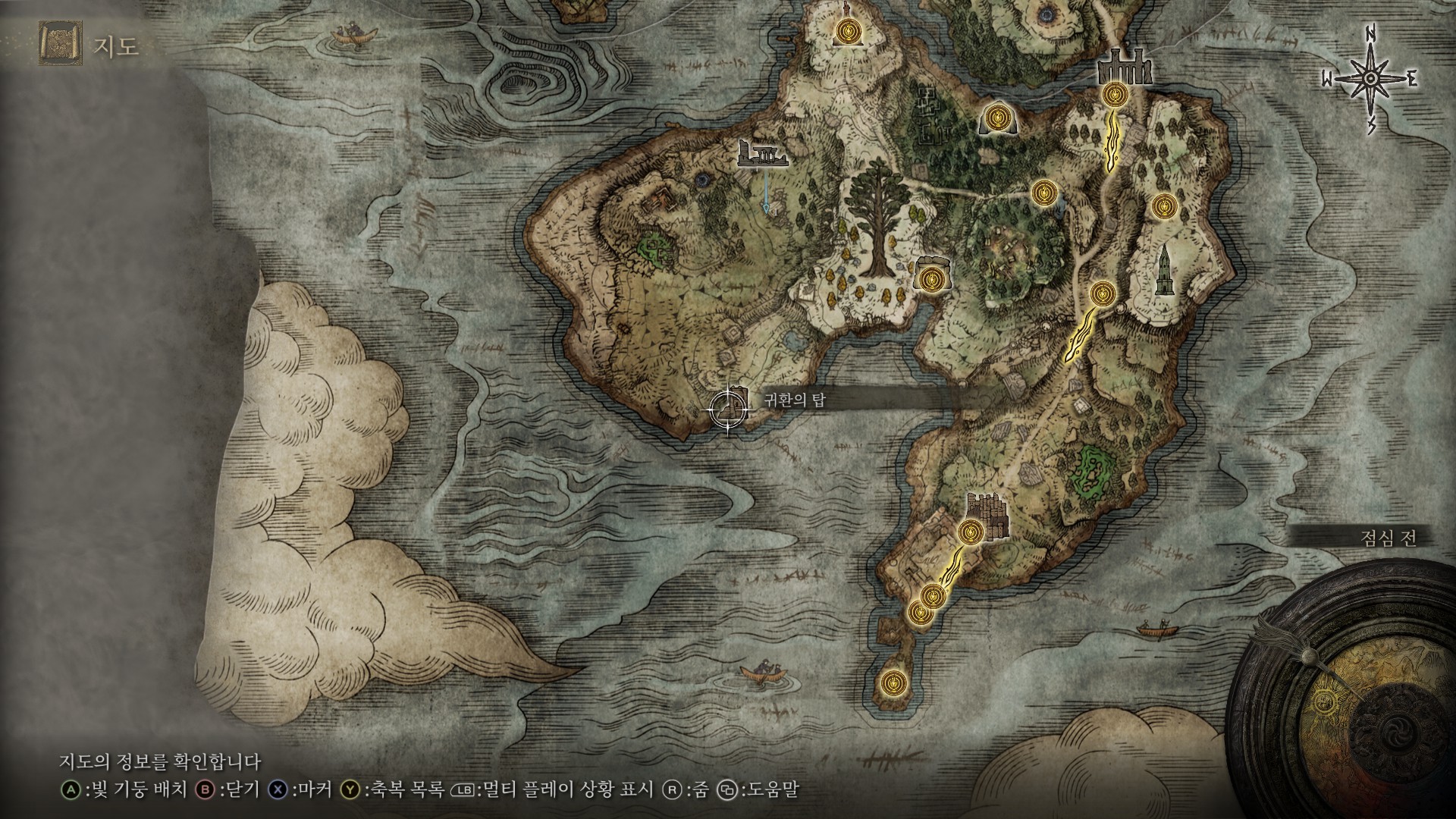 역참터 남쪽의 섬에서 서쪽에 있는 귀환의 탑으로 이동