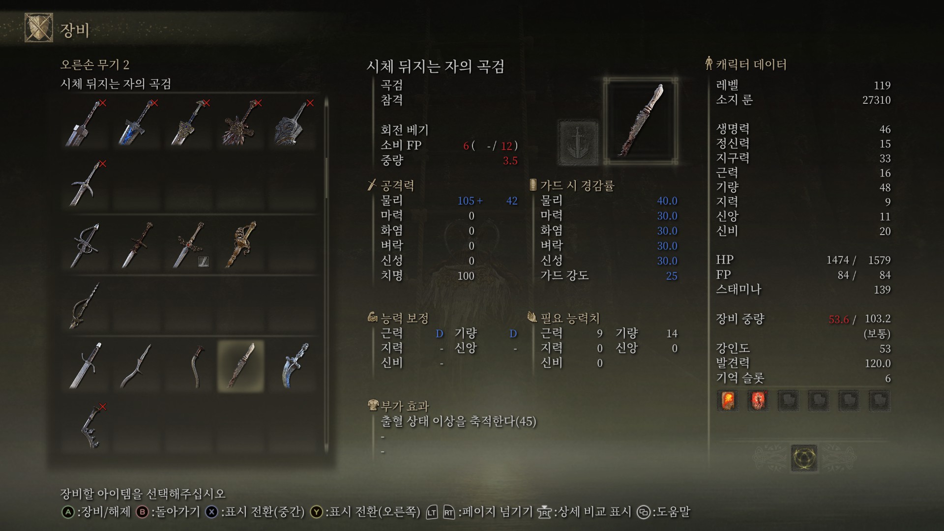 초반의 곡검은 영 성능이 구려보여서 안썼는데, 몇번 휘둘러보니 모션이 꽤 좋은 것 같습니다.