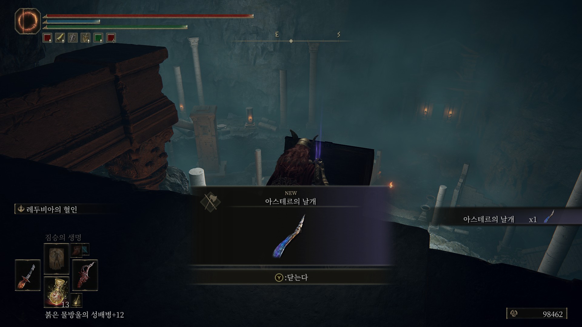 스샷에서 보이는 시체에서는 색 잃은 단석을 먹을 수 있고, 스샷 왼편에 보이는 길을 따라 조금만 진행하면