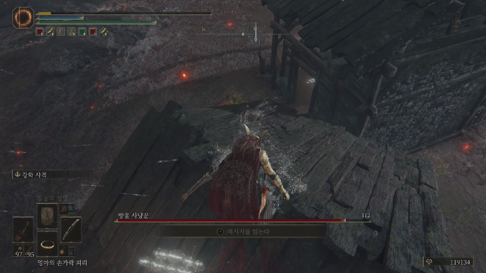 ...만 사람인 이상 모든 공격을 실수 없이 확정적으로 다 피할 수 있는게 아니기도 하고, 케일리드 지역 방울 사냥꾼은 정신나간 딜을 자랑하는게 문제입니다. 보통 알 사냥꾼한테 한대만 맞아도 반피가 넘게 날아가다보니 이성이 마비될 수 있는데, 이런 근접전이 부담스러울 때는 적당히 강화한 뱀활(다른 활도 무방)과 독화살을 준비하세요.