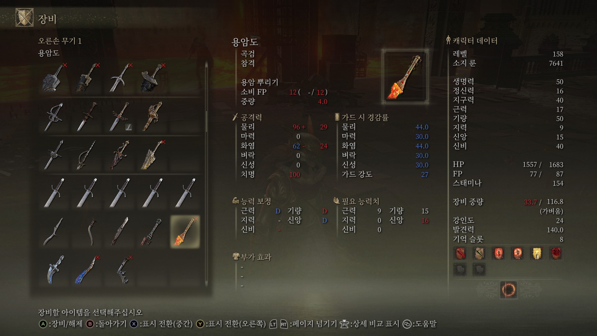 노가다를 시작할 때는 10만 이하의 룬을 소지하고 있었는데, 30만 룬(2회차의 리자드맨을 2번씩 사냥+안아줘요 한마리씩 사냥)을 넘어선 후에야 두번째 용암도를 먹을 수 있었습니다.