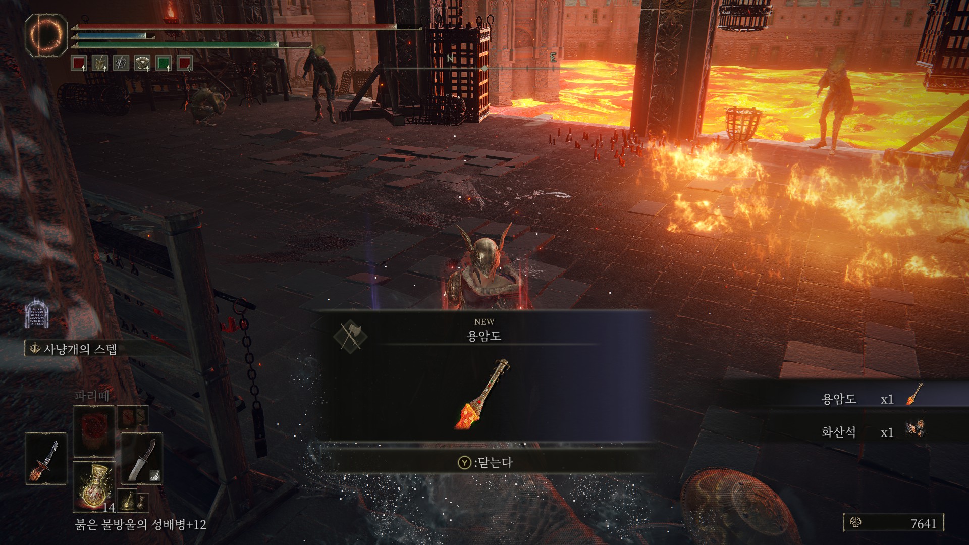 용암도를 들고 있는 개체가 드문 편인데, 저의 경우 에이그레이 성당>엘리베이터>올라가서 통로에 있는 놈 잡고 귀환>반복, 이런 식으로 파밍했습니다.