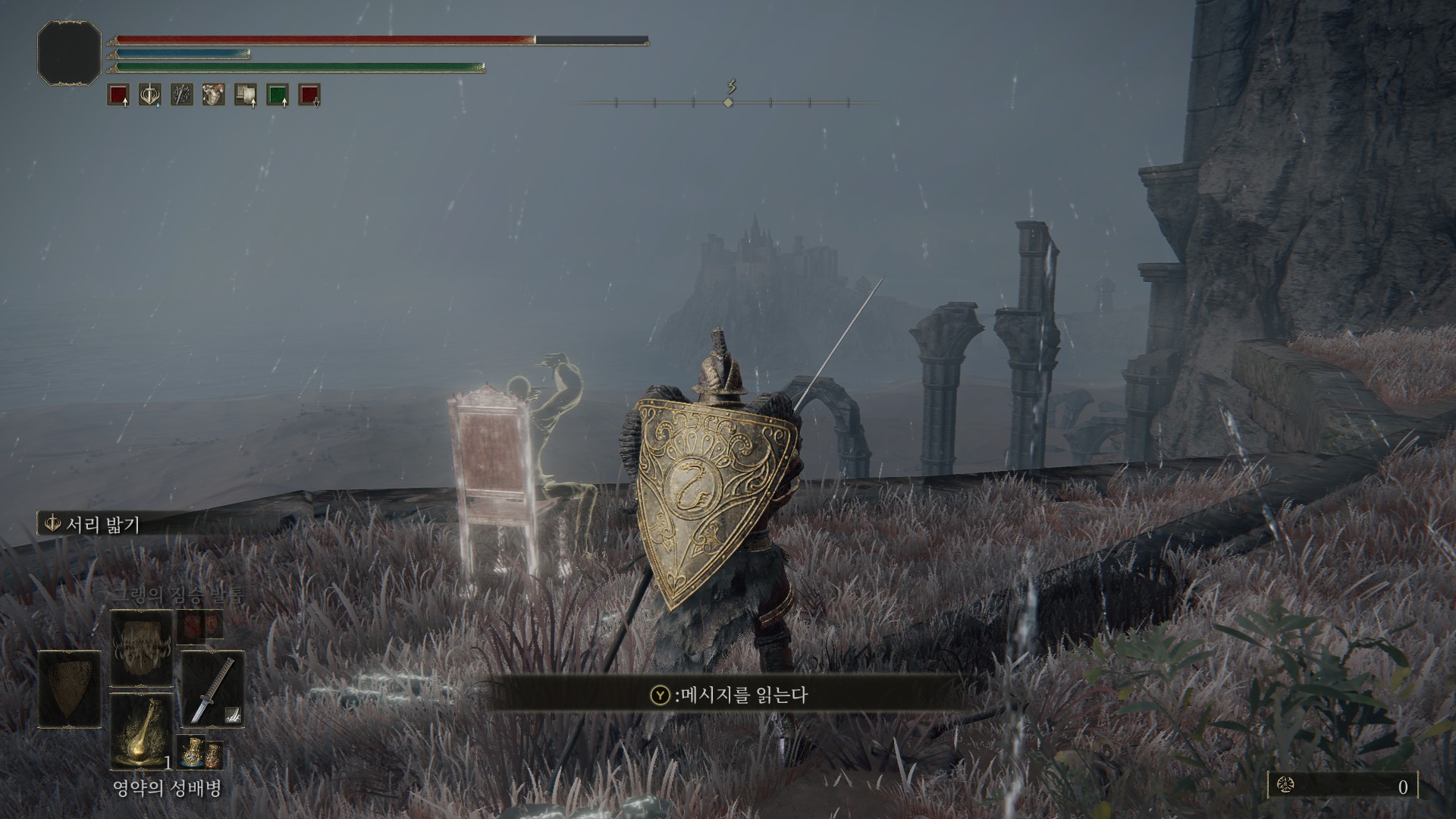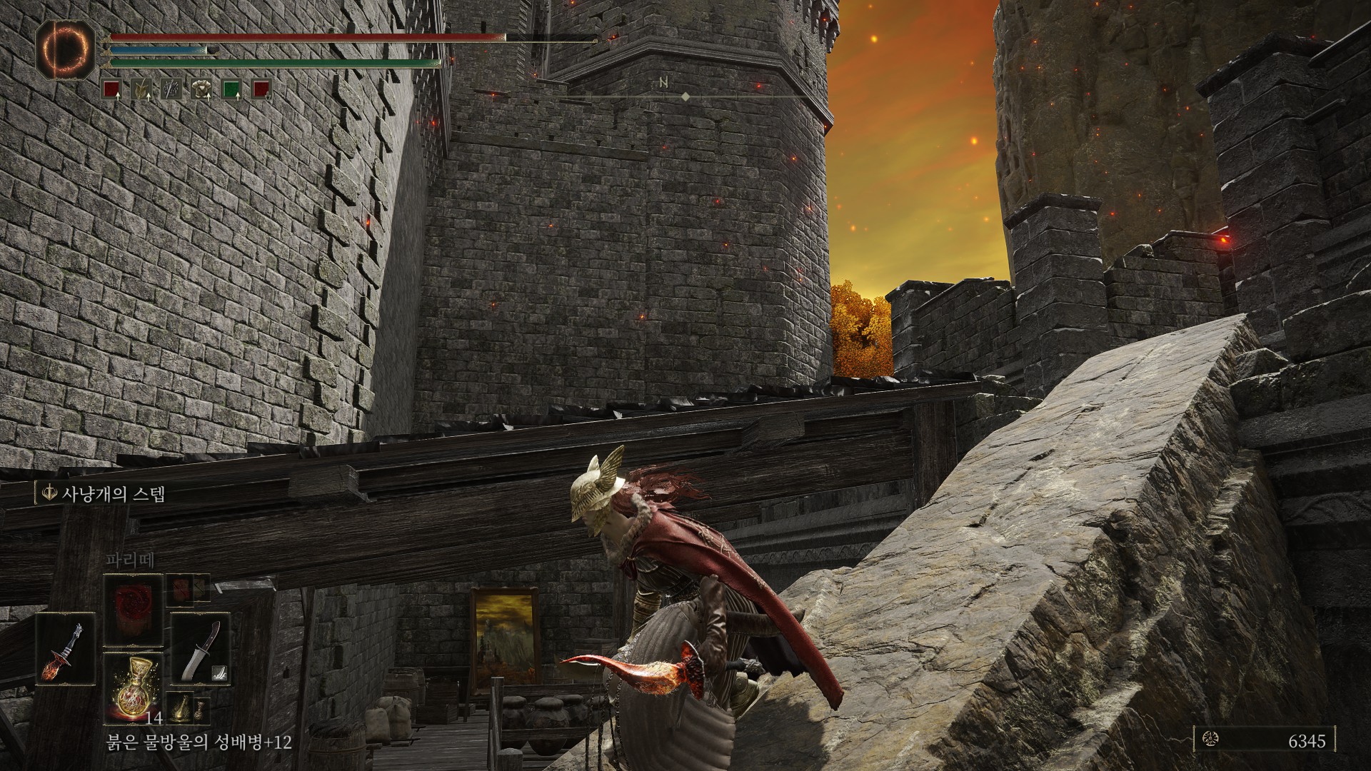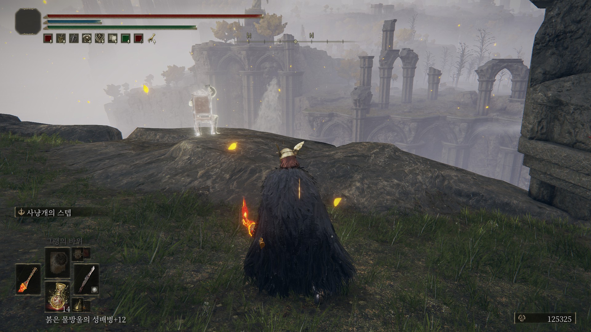 겔미어 화산~알터 고원 사이에 있는 그늘성 성벽 축복에서 시작(1회차 때 먹은 거라서, 그늘성 그림은 이름이 생각 안납니다;)