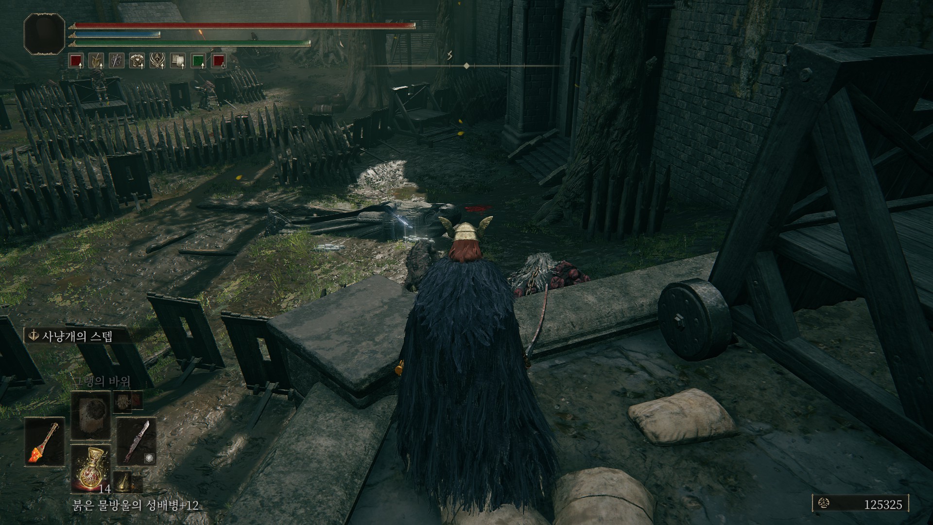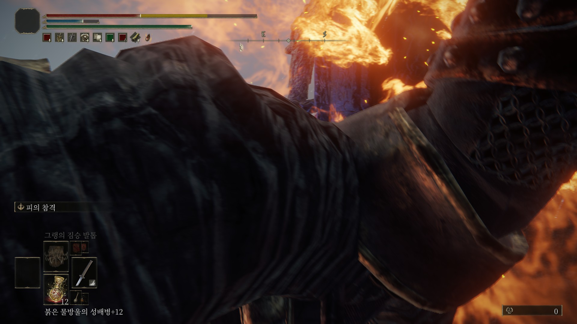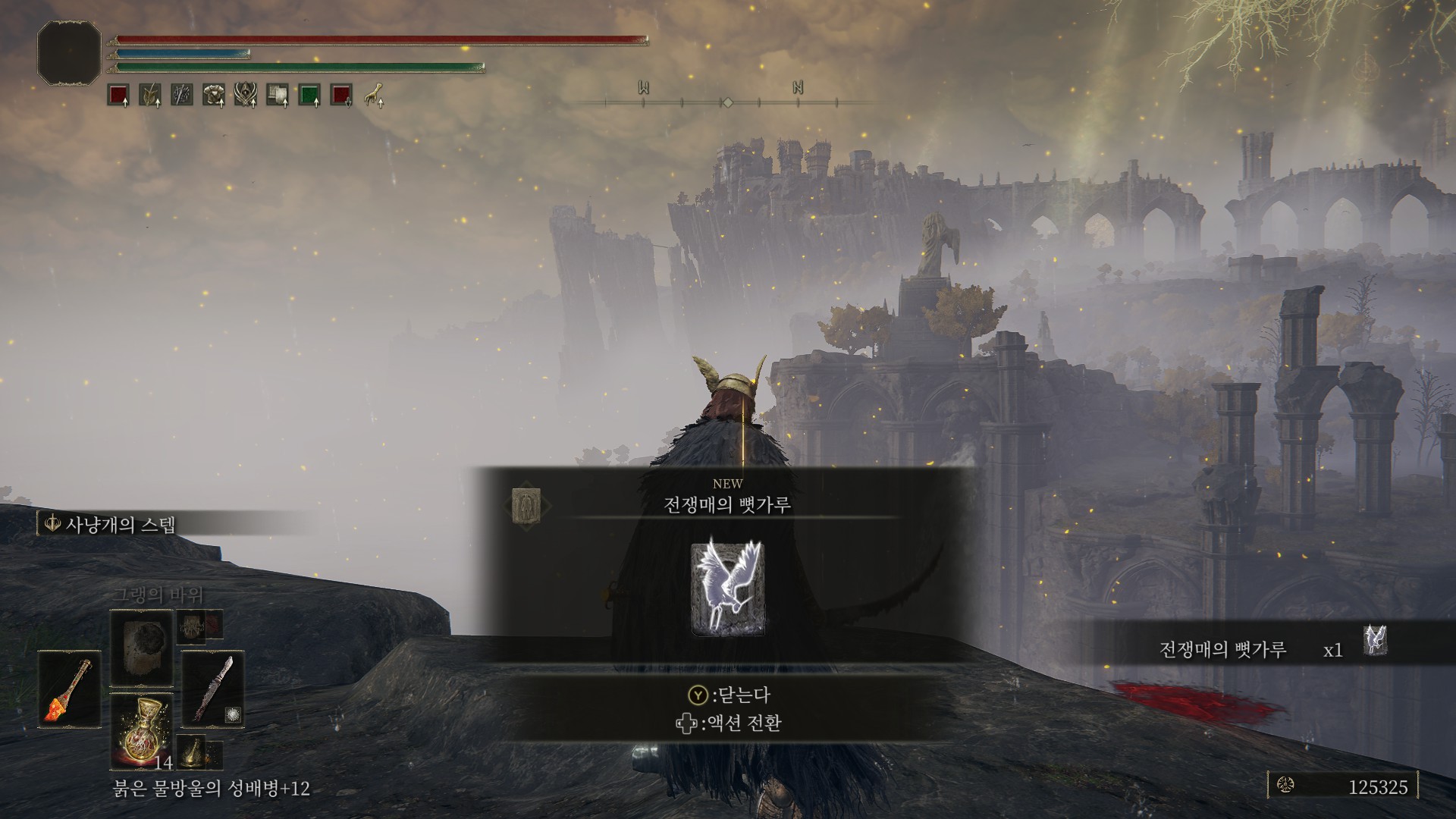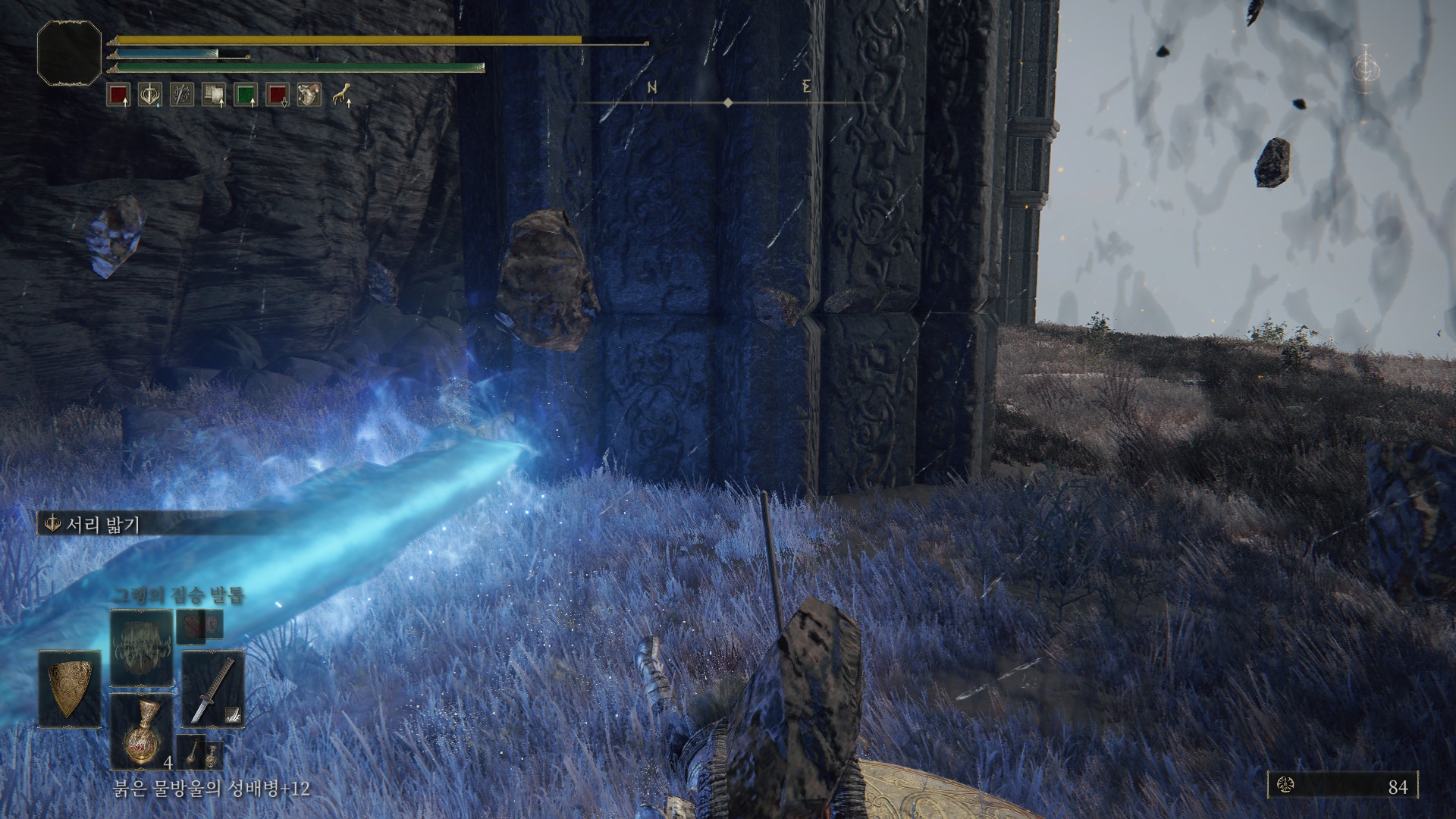 겔미어 화산~알터 고원 사이에 있는 그늘성 성벽 축복에서 시작(1회차 때 먹은 거라서, 그늘성 그림은 이름이 생각 안납니다;)