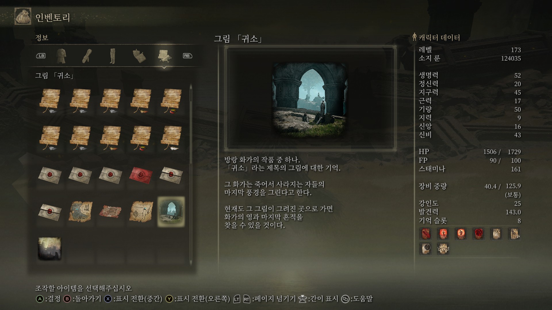 그래서 되도록이면 1회차 때 각 그림들과 관련된 아이템을 모두 얻어놓는걸 추천합니다. 대부분의 그림은 그냥 먹을 수 있지만, 다회차로 넘어간다면 케일리드에 있는 그림때문에 많이 짜증날 수 있습니다.