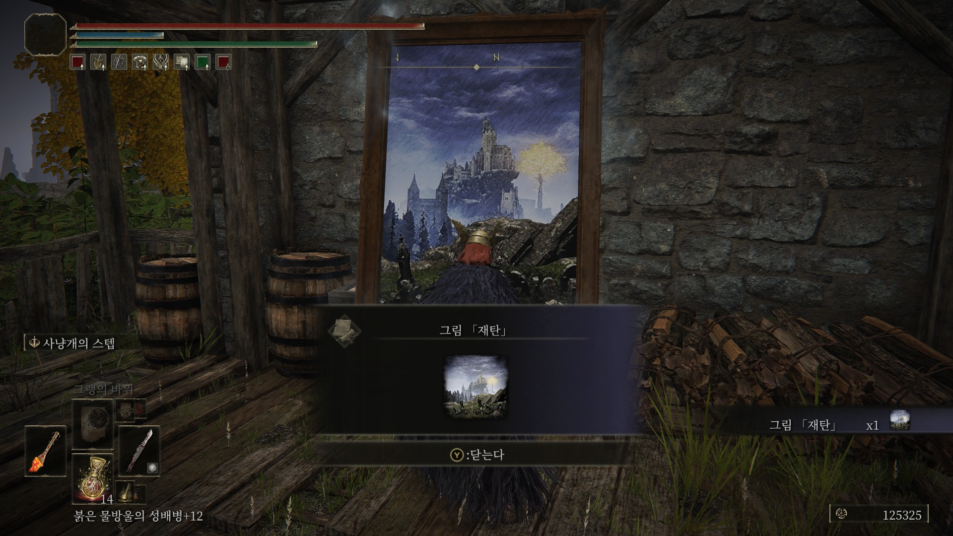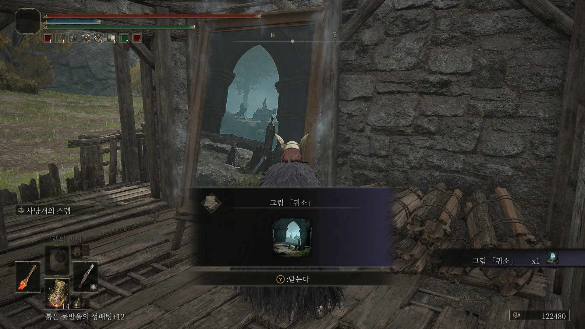 축복에서 공터로 나간 후, 스샷 기준 우측에 보이는 방으로 들어가면 그림이 있습니다.