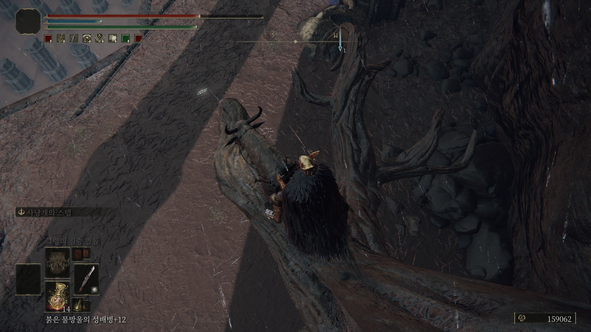 그리고 또 아래를 뽀면 또 뿌리가 보입니다. 여기는 다시 말을 타서 2단 점프로 넘어가시는걸 권장합니다.