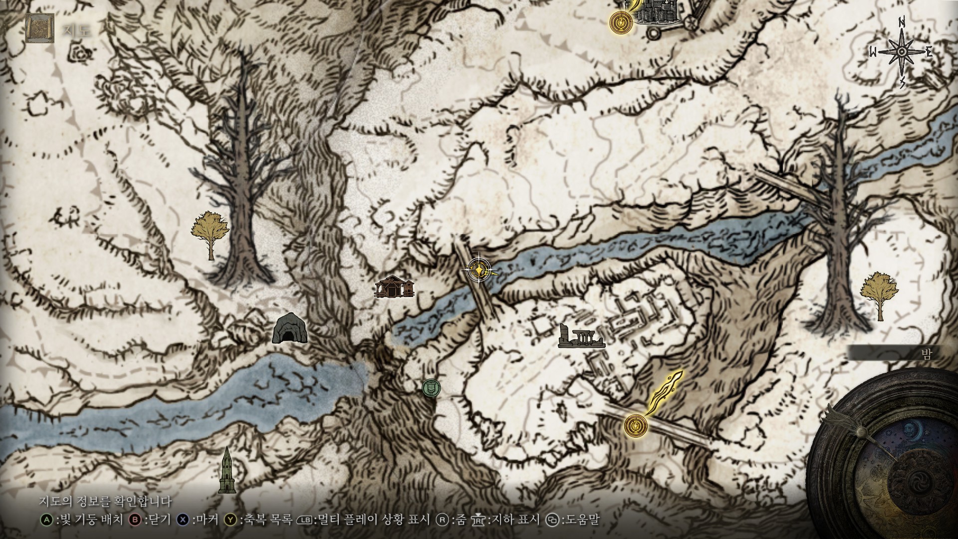 월드맵만 보면 헷갈릴 수 있는데, 유령은 아랫층에 있는 얼어붙은 강이 아니라 위쪽 다리에 있습니다.