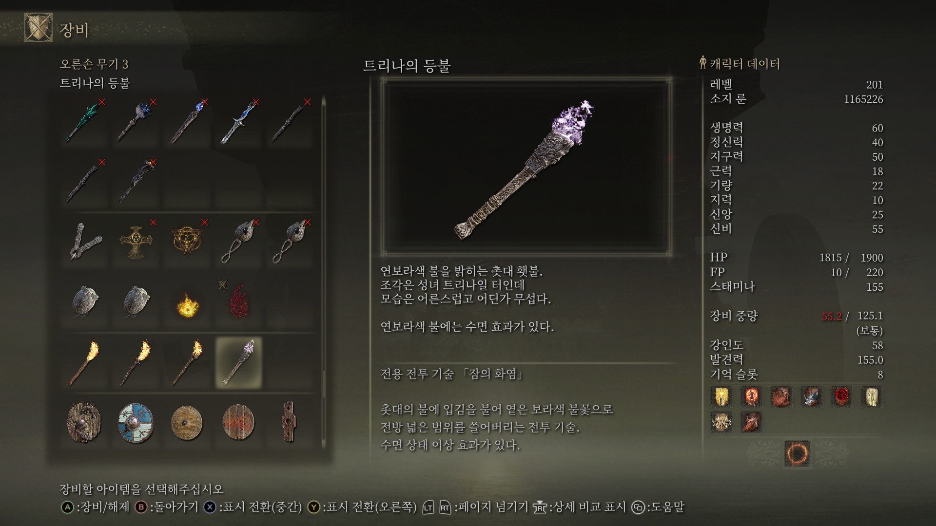 수면 속성이 달려있는 횃불입니다.