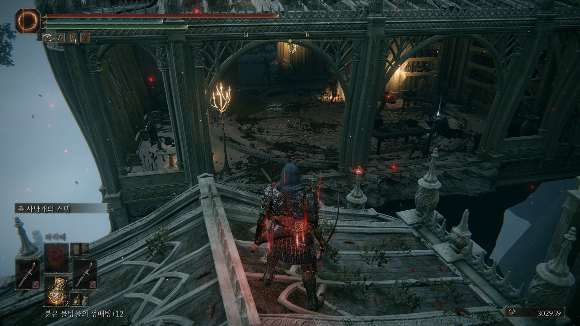 반대편 지붕에 착지한 후 뒤돌아 서서, 반대편 건물로 다시 대쉬 점프(무게가 너무 무거우면 낙사할 수도 있습니다). 반대편에 잡몹이 부담스러우면 마법이나 활로 적당히 정리하고 넘어가세요.