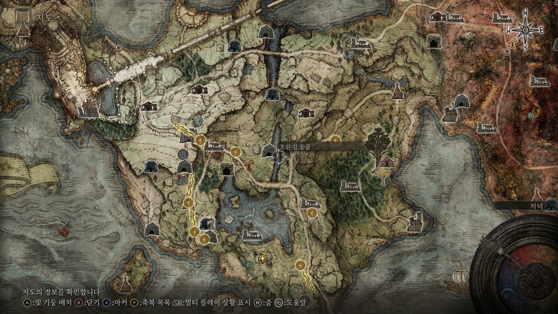 새로운 지역에 들어가게 되면 지도찾기를 최우선적으로 하시고(월드맵을 켰을때 비석처럼 생긴 아이콘 위치에 가면 지도가 있습니다), 림그레이브 주변을 파밍하면서 렙업을 합시다.