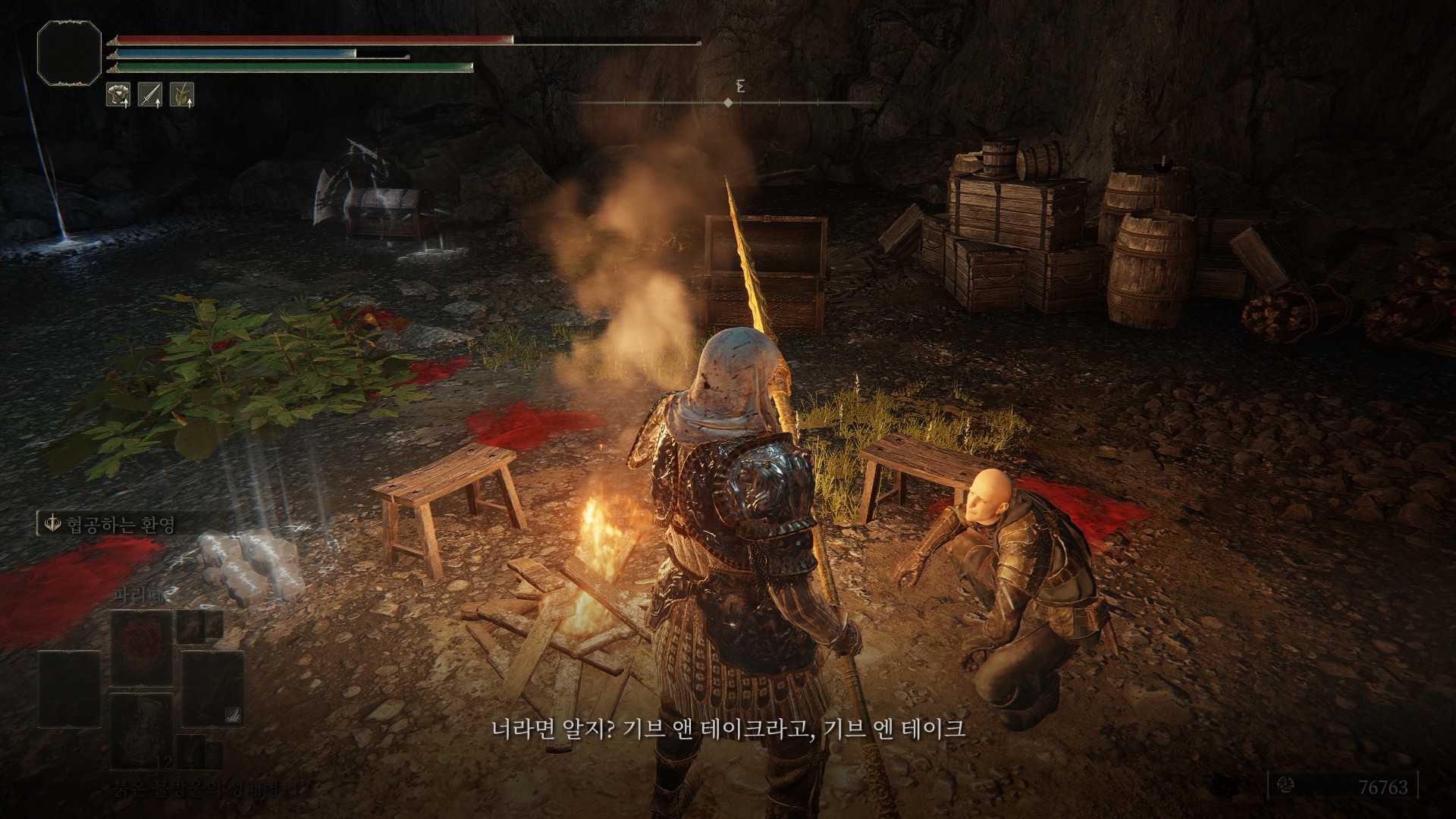 동굴 입구로 돌아가서, 축복에서 한번 쉬고 다시 동굴로 찾아가면 패치에게서 아이템을 살 수 있습니다.