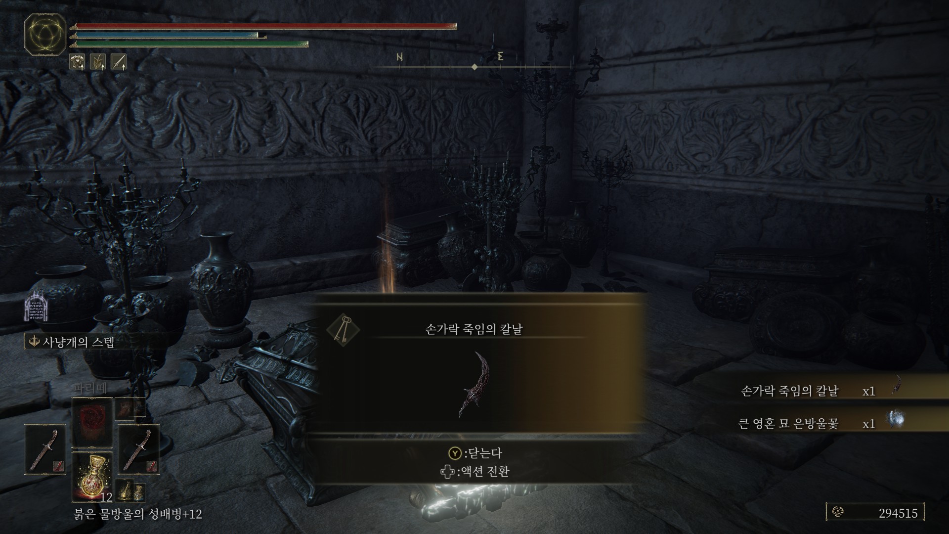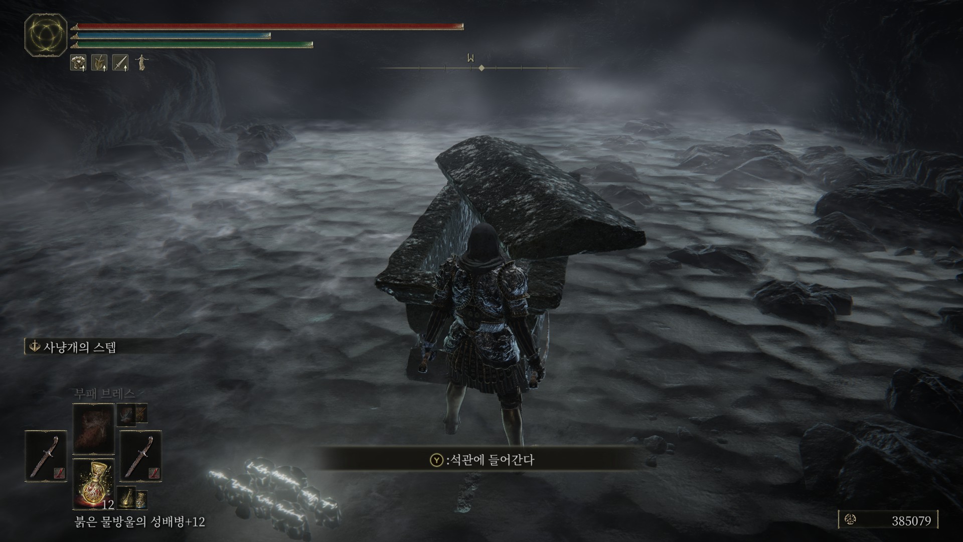 보스를 잡고 축복을 찍고, 근처의 아이템을 드신 후에 폭포 옆에 있는 관짝으로 갑시다.