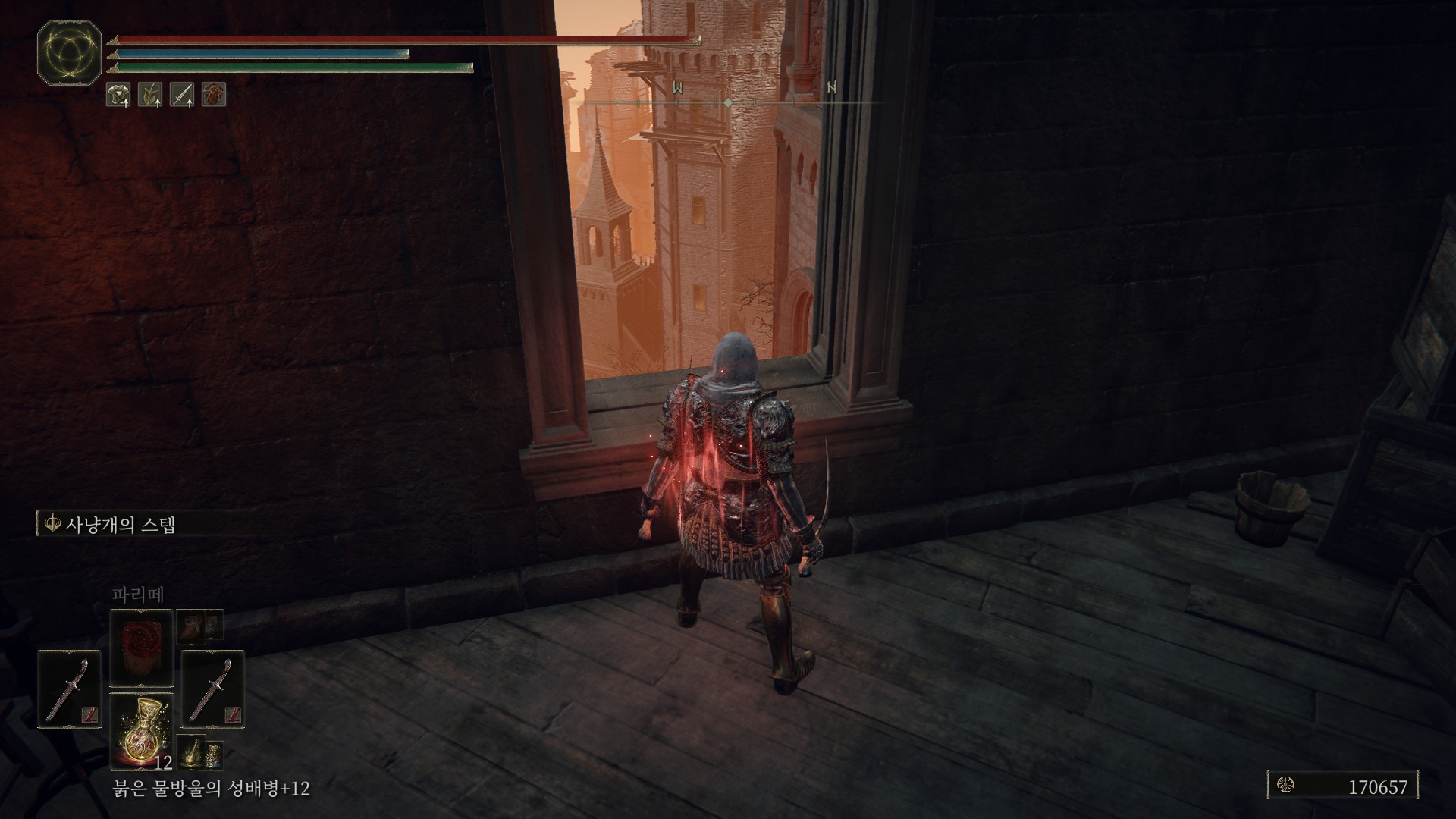 방안에 잡몹을 한마리 잡고 건물 밖으로 난 창쪽으로 나갑시다.