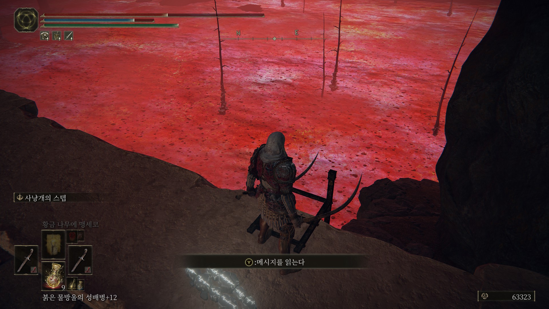위 스샷 커서 위치까지 갔으면 더이상 밟을 수 있는 블록이 안보일텐데, 부패한 호숫가 축복으로 돌아갑니다.