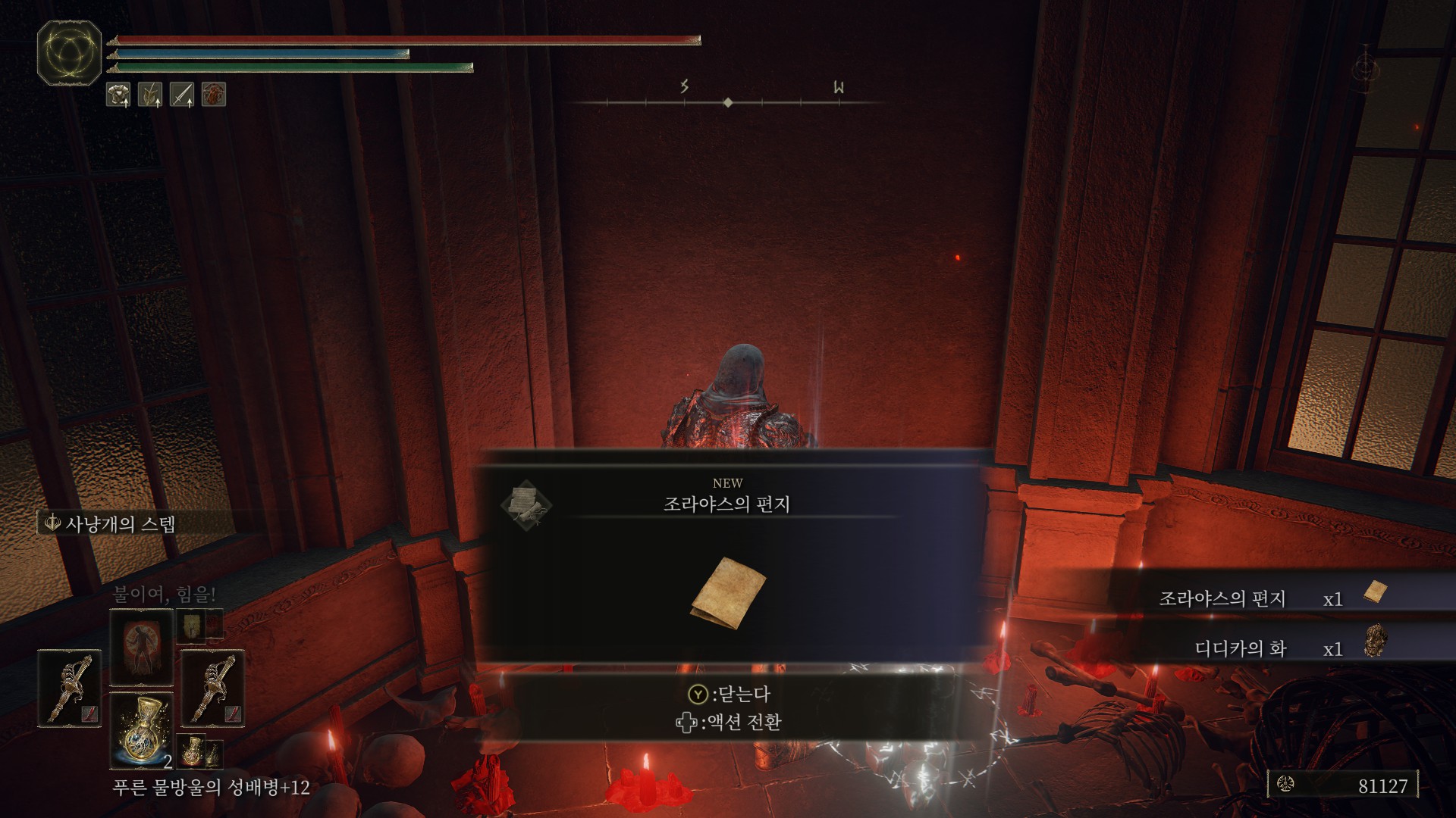 카리아의 서원 아이템을 안먹었다면 그쪽으로 이동해서 아이템을 파밍합시다.
