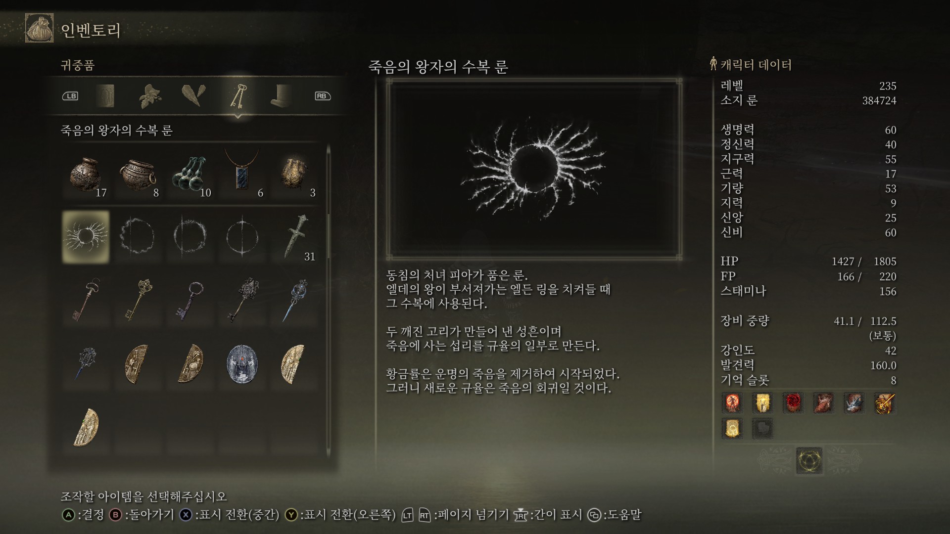피아에게서 죽음 왕자의 수복 룬 획득