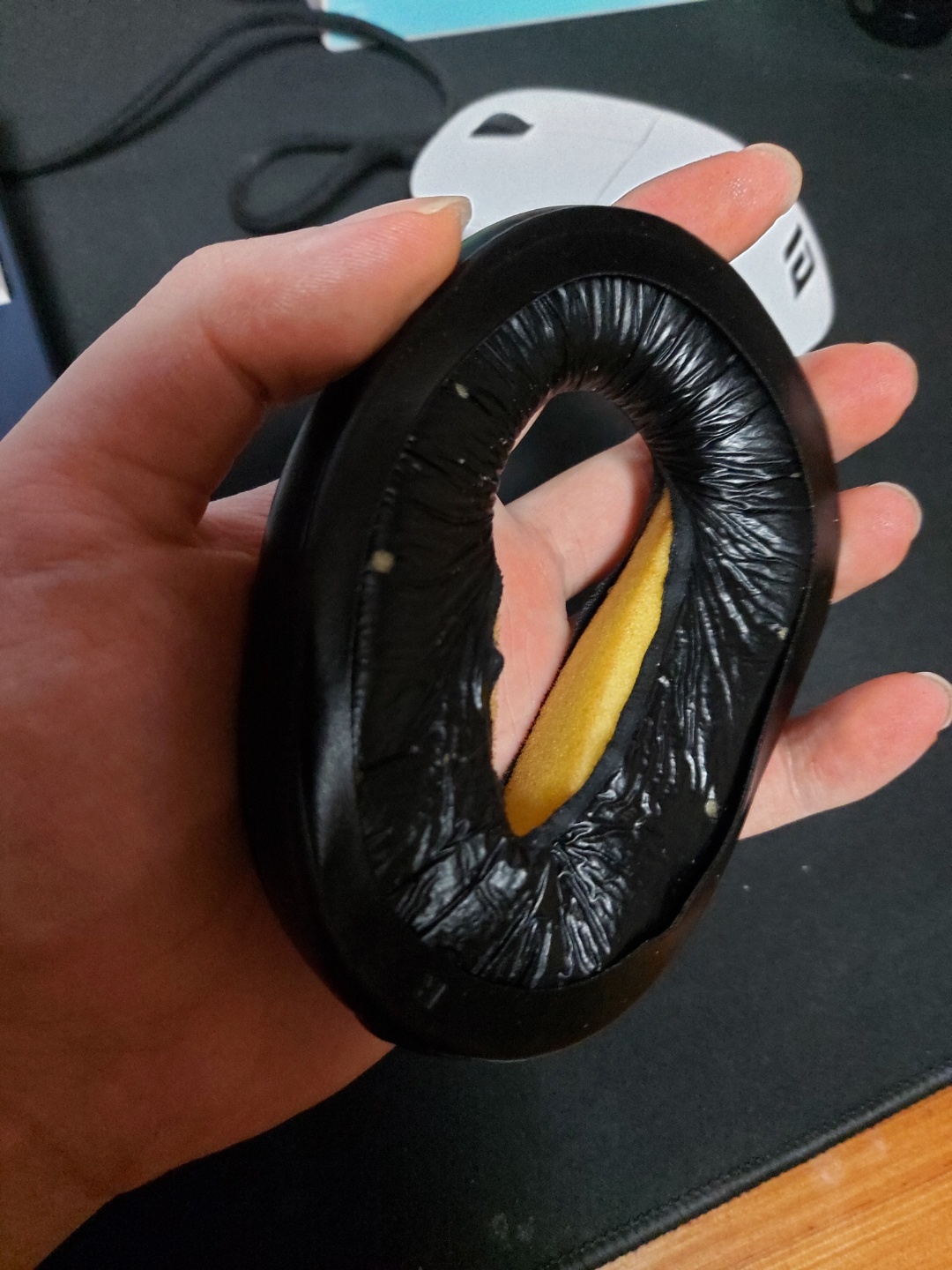 gsp370의 이어패드는 후면부에서 마감하거나 측면에서 재봉으로 마감한게 아니라, 측면부를 본드로 대충 붙여놔서 좀 쓰다보면 옆구리가 걸레처럼 터져나갑니다.