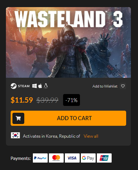 eneba인가 하는 쇼핑몰이 약간 더 싸긴 한데, g2a식 리셀러 사이트 같아서 걸렀습니다.