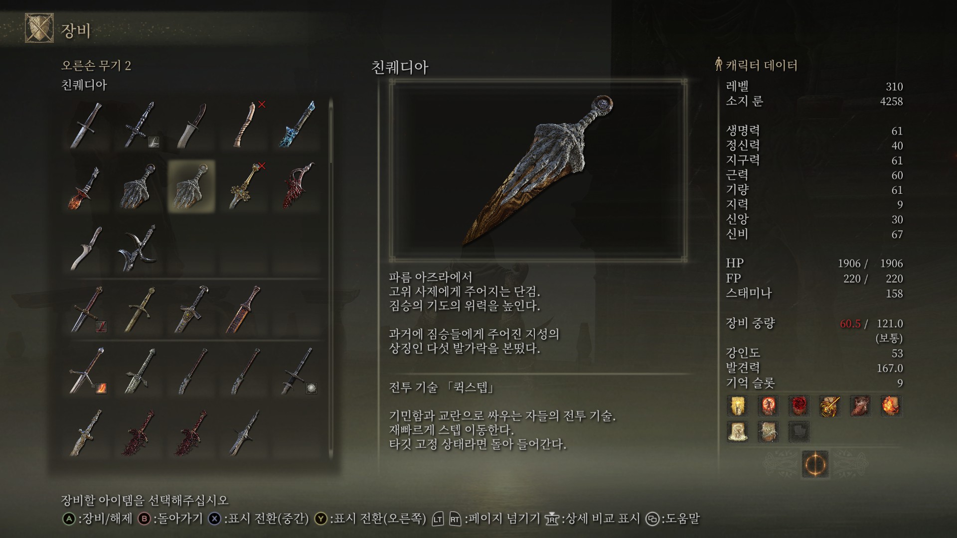 말리케스가 소지한 단검은 친퀘디아입니다.