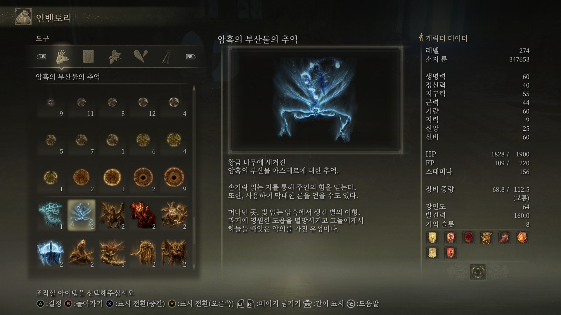사자의 부채피리 제외 모든 아이템을 다 모아서 슬슬 스토리 정리를 해보겠읍니다.