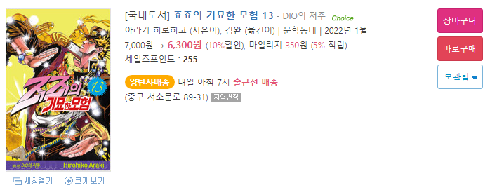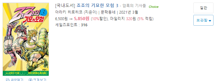 보시다시피 죠죠의 기묘한 모험은 가격을 다 올려서 재출간을 하고 있습니다.