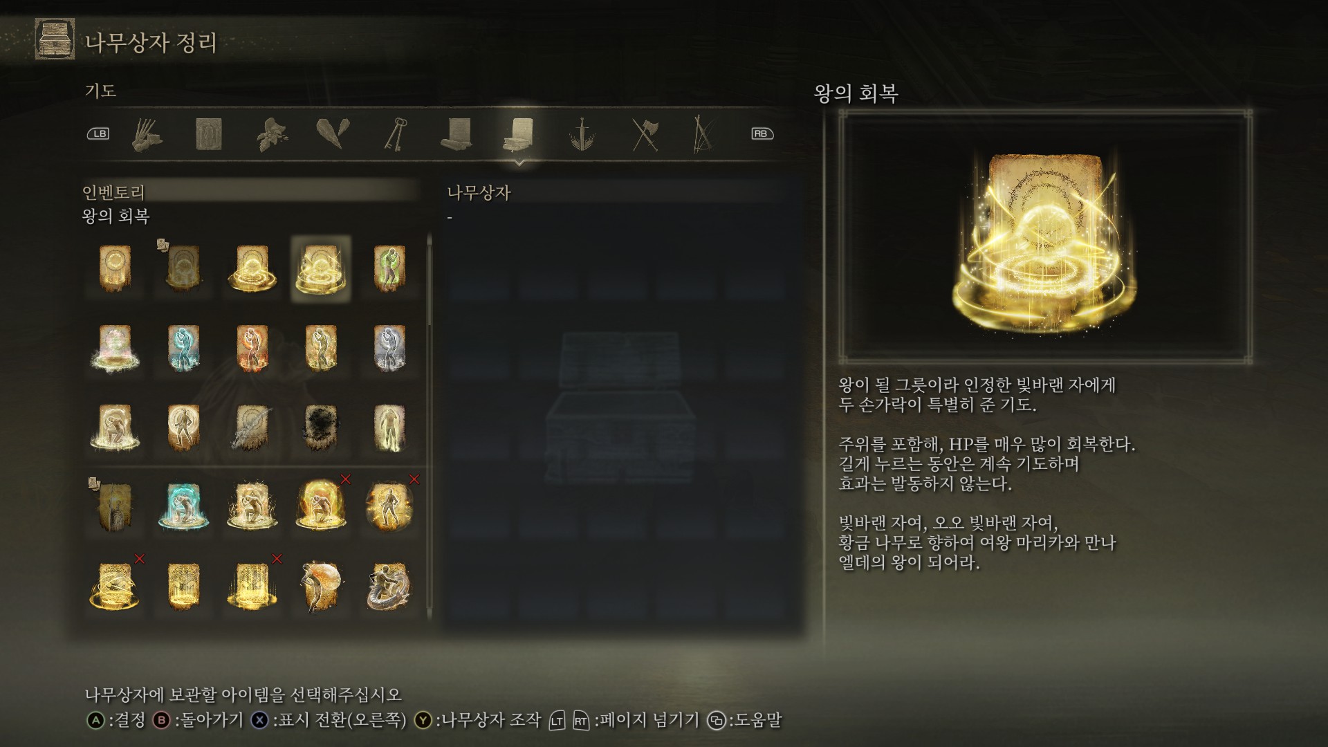 왕의 회복 설명에는 왕이 될 그릇의 빛바랜 자라고 명시 되어 있습니다.