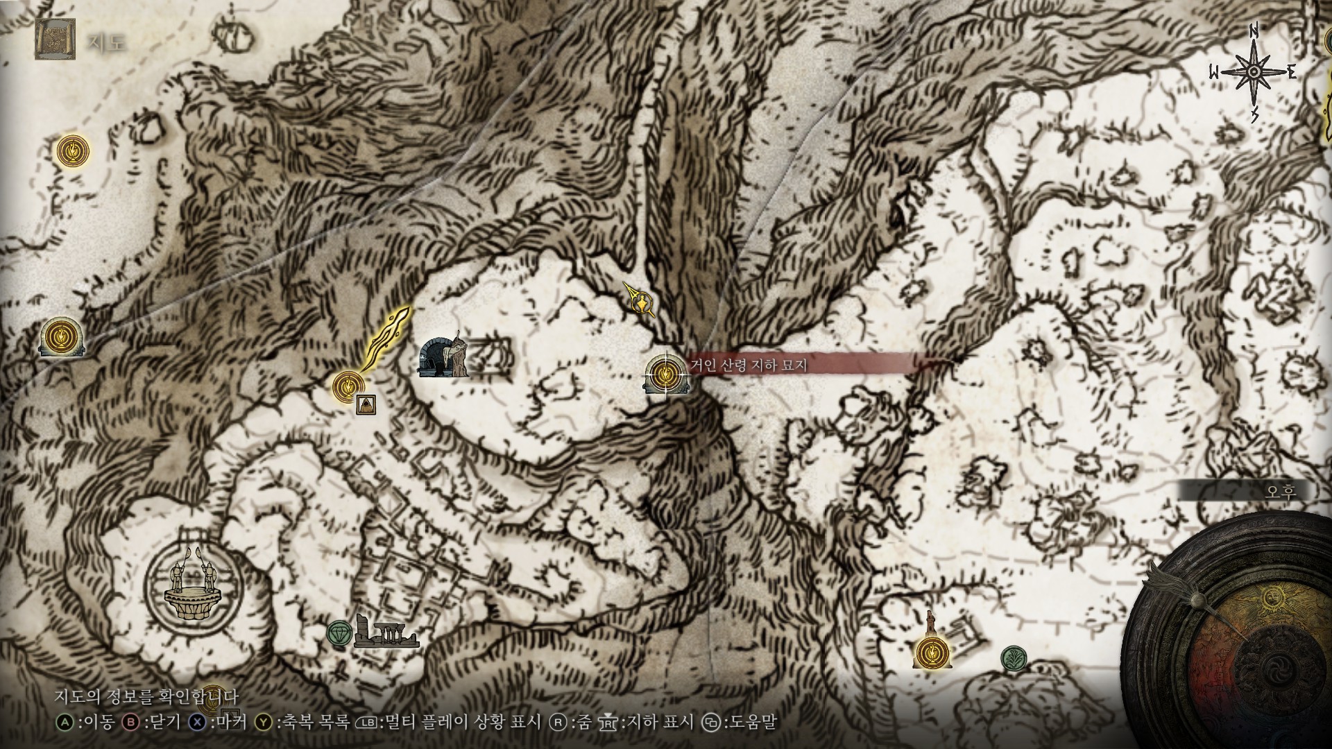절벽을 건너기 전 남동쪽 구석탱이에 있는 거인 산령 지하 묘지 축복을 찍습니다.