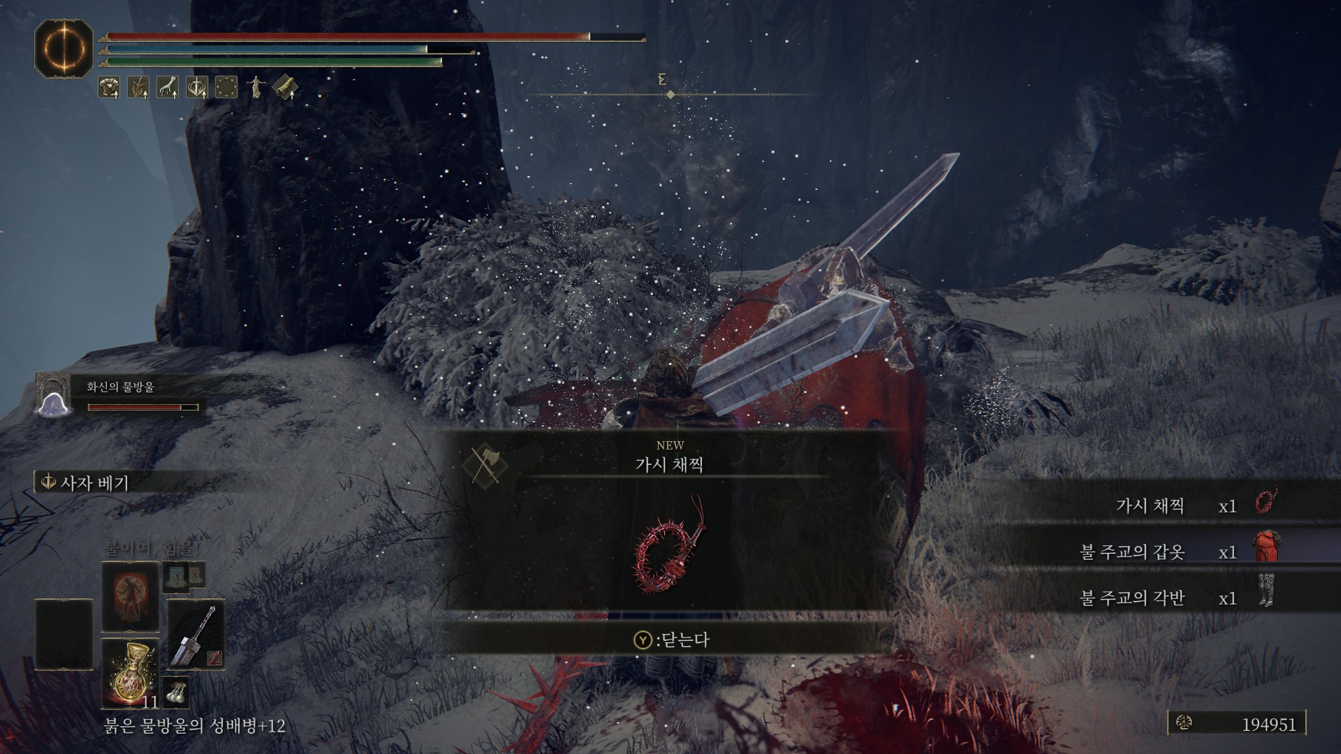 불채찍은 절벽 시작 지점에 있는 불주교가 드랍하니까, 불주교를 잡고>축복 귀환>반복을 하시면 됩니다.