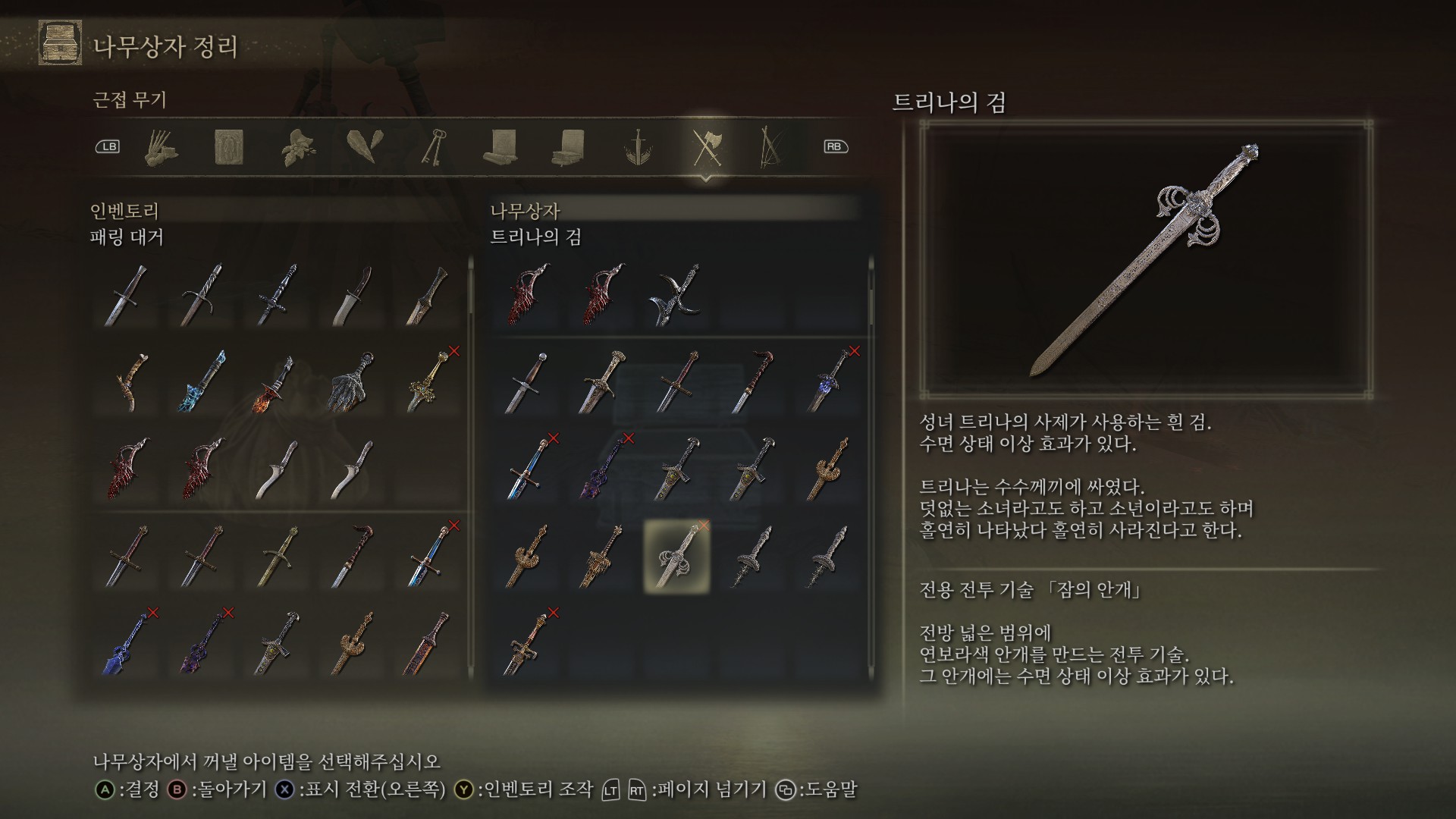 트리나의 검에서 알 수 있는 사실은 트리나가 성녀였다는 것(미켈라는 남자인데 트리나는 여자? 마리카와 라다곤을 떠올려 봅시다. 충분히 가능한 각입니다), 수면과 관련된 기술을 구사했다는 것입니다.