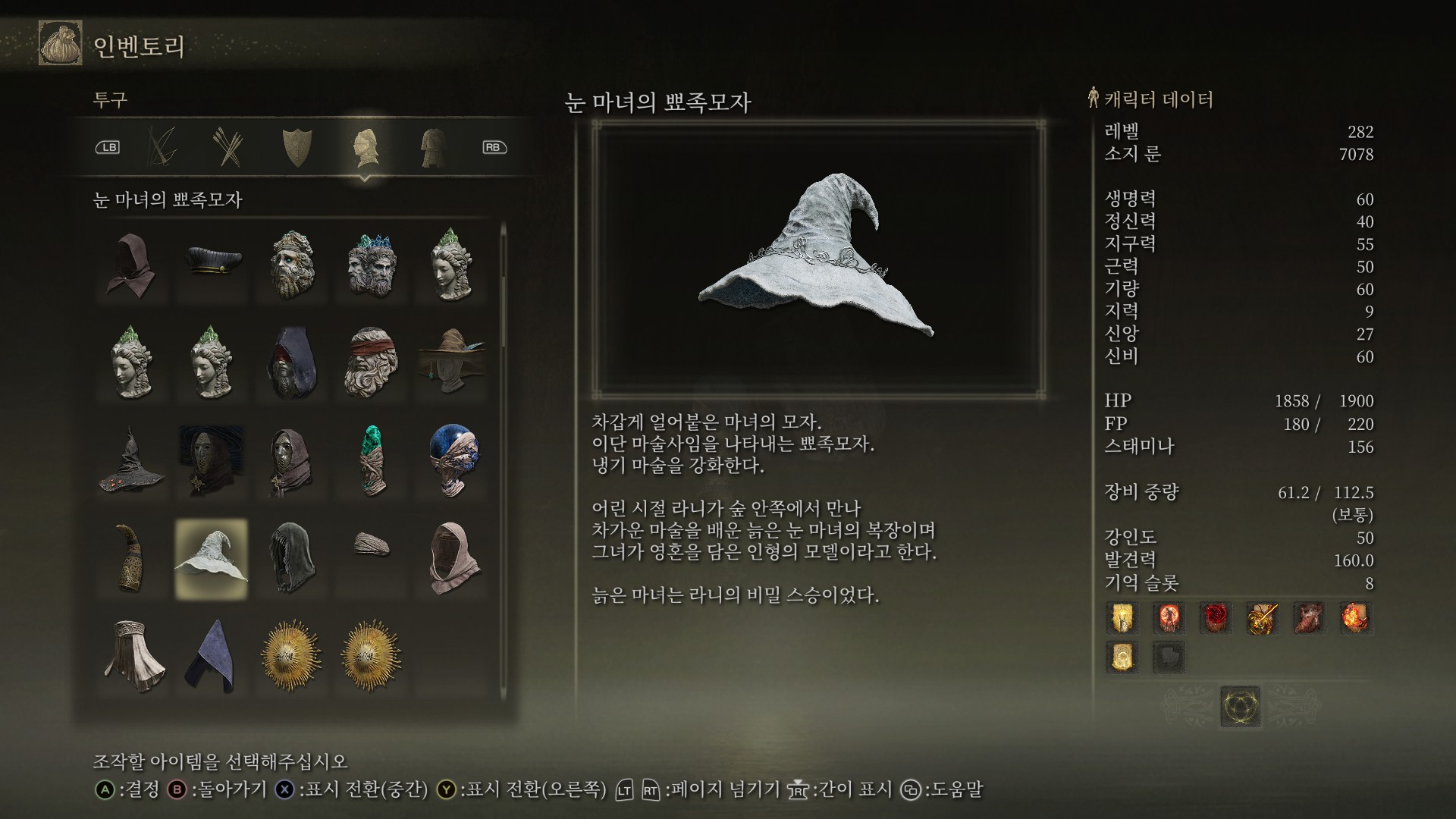 그럼에도 불구하고 라니를 좀 더 살펴볼 필요가 있는데, 앞선 인물(마리카, 말레니아, 미켈라)들과 다르게 라니가 착용하고 있는 모자는 라니 자신의 것이 아닙니다. 아이템 설명에 나와있듯이 그것은 그녀의 스승, 늙은 눈 마녀의 옷입니다.