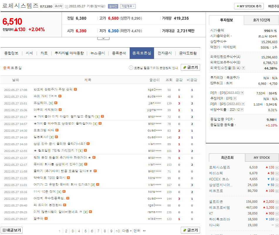 이 종토방에는 3년째 헛소리를 하는 정신병자도 있고(종목을 빨았다가 뱉었다가 하는 호감고닉), 최근에는 바퀴벌레인지 슈퍼거머리인지 뭔지를 언급하는 사람들까지 난입해서 굉장히 시끄러운 분위기가 유지되고 있다.