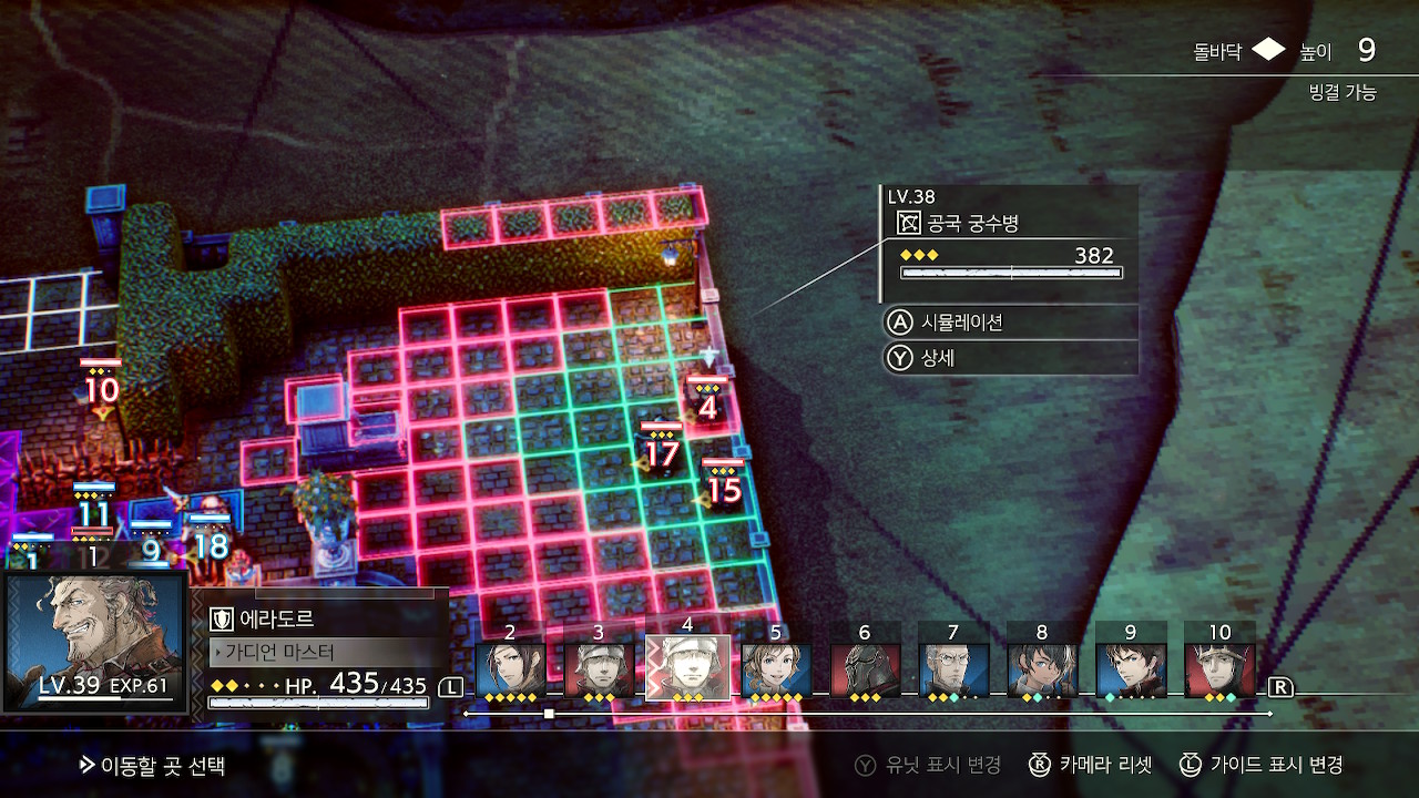 맵 가운데의 고지대는 휴에트나 기타 이동력이 좋은 원거리 캐릭터로 점거하면 전투가 쉬워집니다.