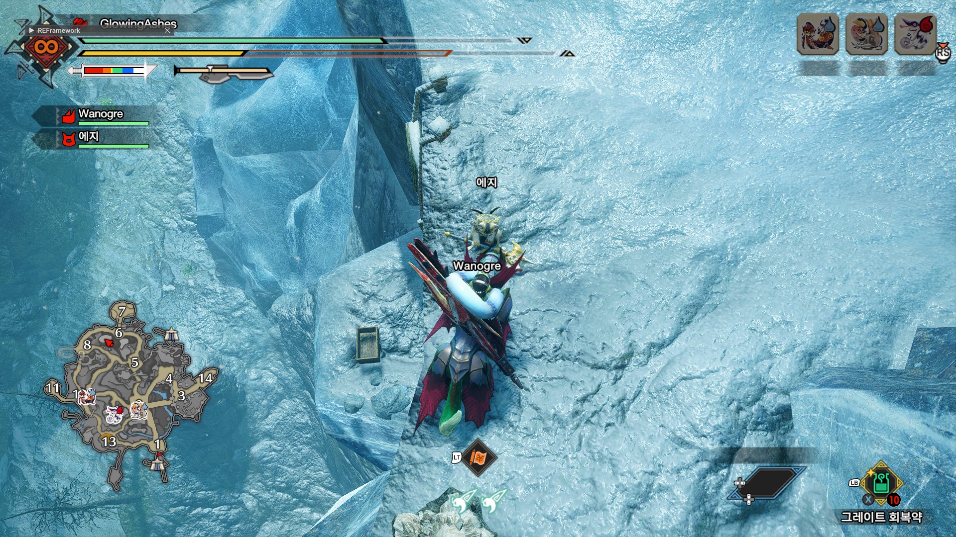 얼음이 없는 암벽을 타고 위로 올라가시면 됩니다