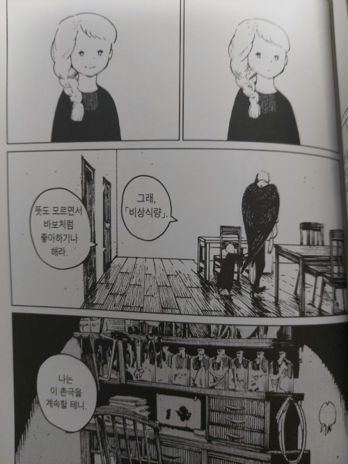 바깥 나라의 소녀의 경우 이런(?) 묘사가 없지만, 이걸 보고 나니 비교적 멀쩡하게(?) 본 다른 단편들도 슬슬 이상하게 느껴지기 시작하고, 나가베 자체에 대한 두려움이 샘솟게 된다.