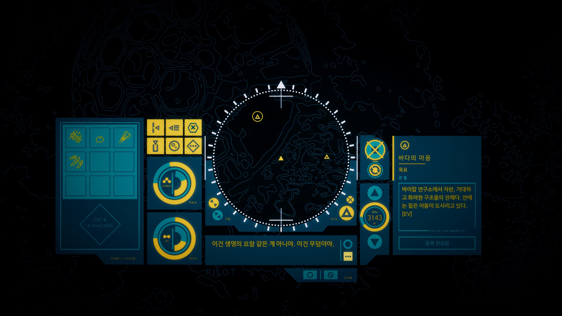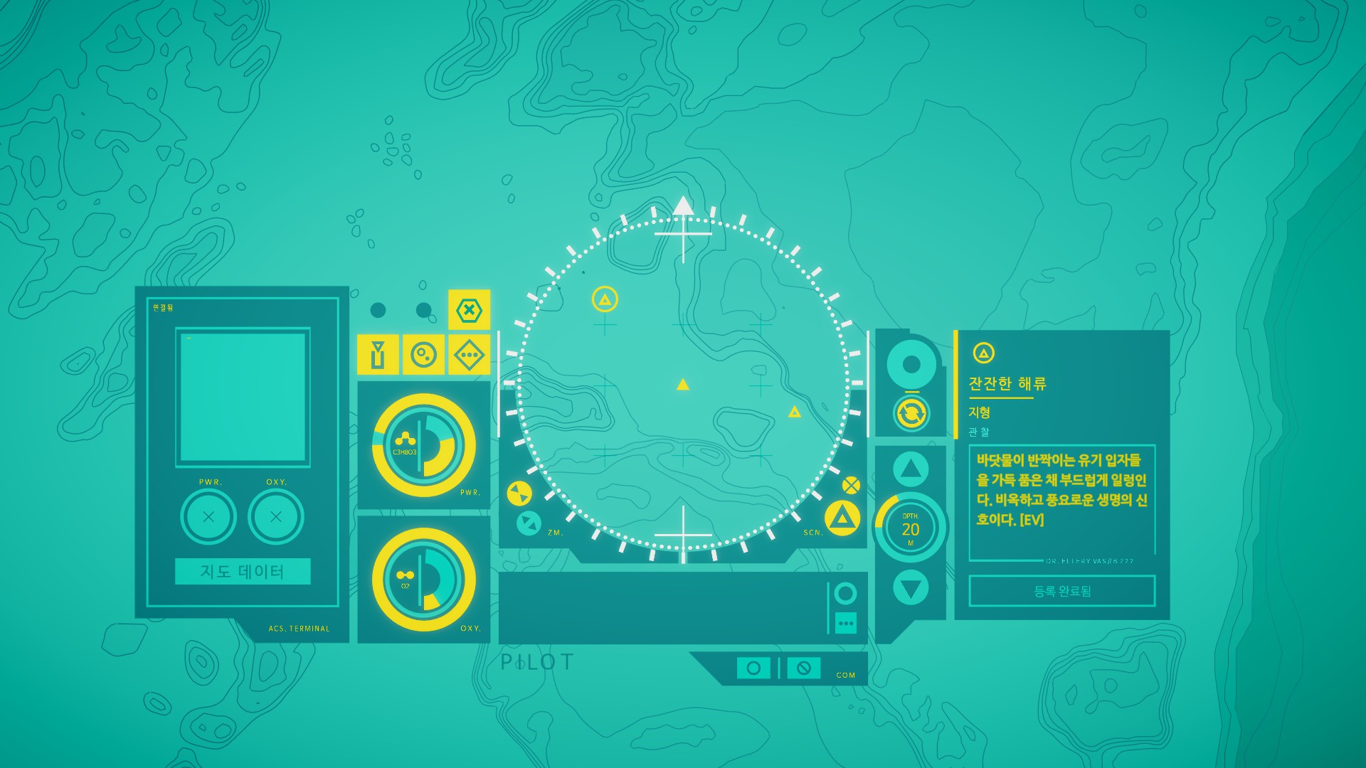 가벼운 마음으로 해저를 뒤지기 시작해서, 5~6시간 후면 엔딩을 볼 수 있는데, 그 과정에서 플레이어가 듣게 되는 이야기는 누구에게는 흥미로울 수도 있고, 누구는 고전SF처럼 느낄 수도 있을 것이다. 그런데 내가 하고 싶은 말은 그 시나리오에 대한 감상이 아니다. 내러티브가 아닌 플레이에 대한 이야기다.