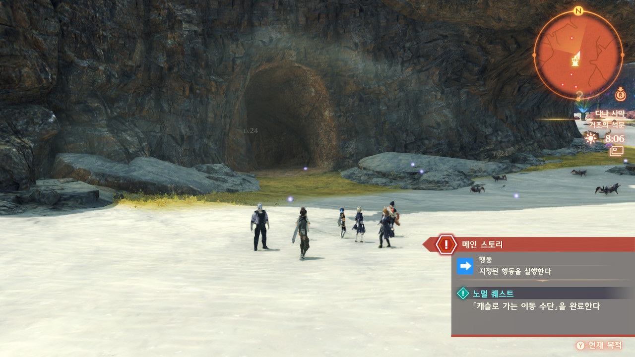 패스트 트래블 이용 후 좌측을 보면 동굴이 보이고, 이 동굴을 따라 계속해서 이동하세요.