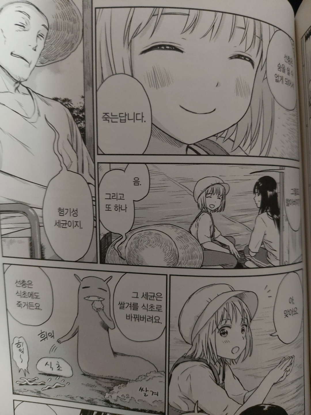 히ㅌㅁ에서 썸네일만 보고 어떤 작품을 클릭했다가 굉장히 과격하고 잔인한 묘사 덕택에(?) 이름을 기억하게 된 작가의 단행본. 신체 훼손을 좋아하는 작가가 그리는 농경생활 힐링 보빔물이 궁금해서 1권만 사봤는데 의외로 진짜 평범한 일상만화였다.