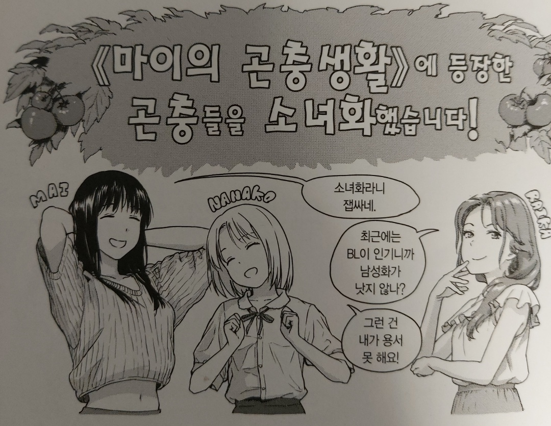첫번째 컷은 음지작을 생각하면 공연스레 모골이 송연해지는 장면인데, 다행스럽게도 양지작에서는 그런(?) 사건이 발생하지 않는다. 마이의 곤충생활은 분명히 일상물인데 작가의 음지작 때문에 묘하게 무섭게 느껴짐.