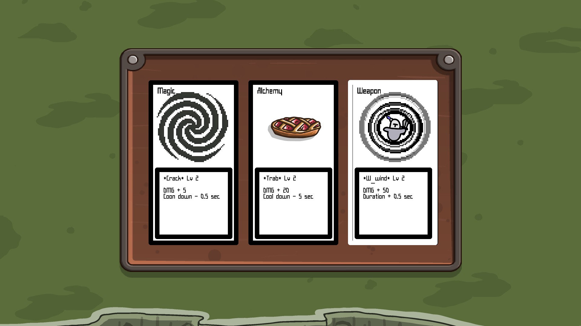 -찍어서 사용하기 전까지는 뭐하는 스킬인지 알 수 없는 것들이 많다. 예를 들어, 웨펀 테크의 w_wind라던가, 알케미 테크의 펌킨. 특히 펌킨은 상점 페이지로 보건대 어떻게 이어붙여서 사용할 수 있는 것 같은데, 실제로 써보면 평타급 데미지+매우 느린 공속으로 서너번 때리고 사라지는 호박 한덩이가 소환되는게 끝이다. 뭔가 더 찍으면 스킬이 변화되는 식이겠지만, 그 요구치가 몇 레벨인지 알 수 없는데다가, 조건을 충족시키기 전까지는 잉여 스킬인게 문제.