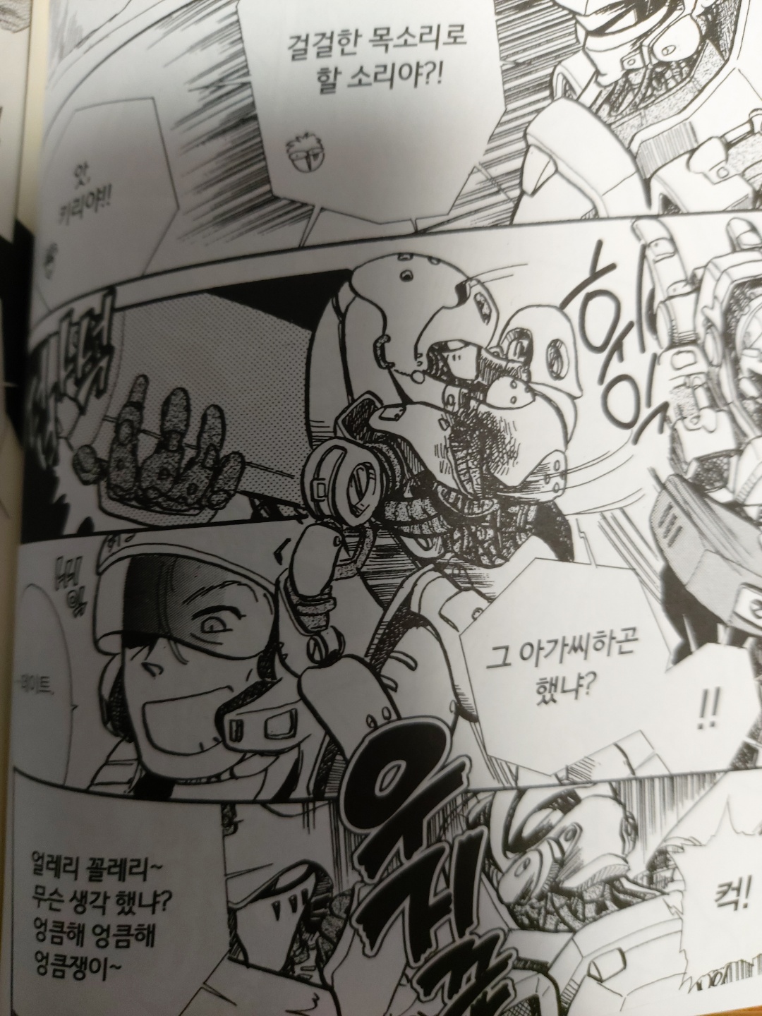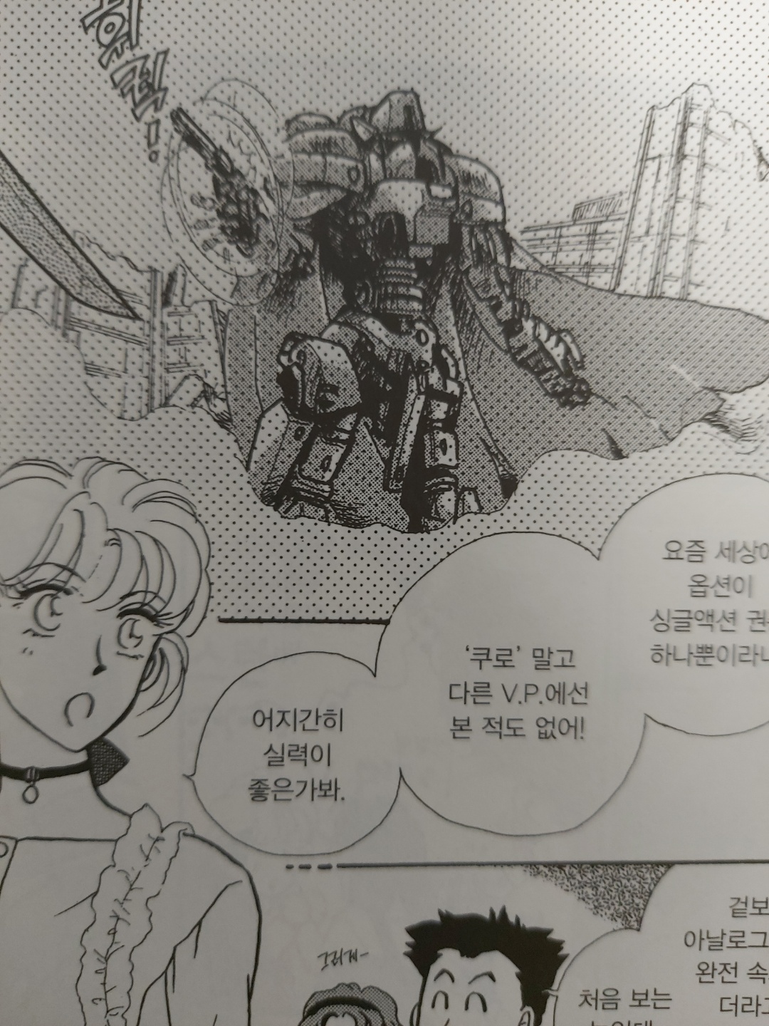 메카 묘사는 꽤 세밀하지만 인물들 그림체는 순정만화 그림체라서, 그 간극이 처음에는 어색할 수 있는데, 보다보면 무뎌지는건지 크게 신경이 안쓰이게 된다.