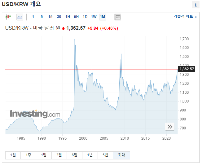 한달전만 해도 늦든 빠르든 원달러1400원은 찍을거라고 생각했는데, 곰곰히 생각해보니 1400원이 아니라 1600원을 걱정해야 될 것 같다(...).