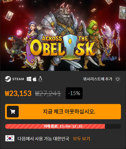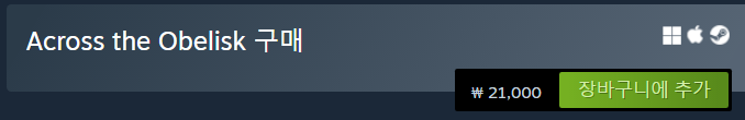어크로스 더 오벨리스크 스팀 정가 2.1만원 = 1 후라이드 치킨