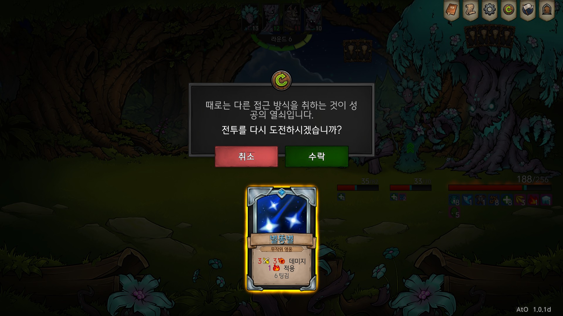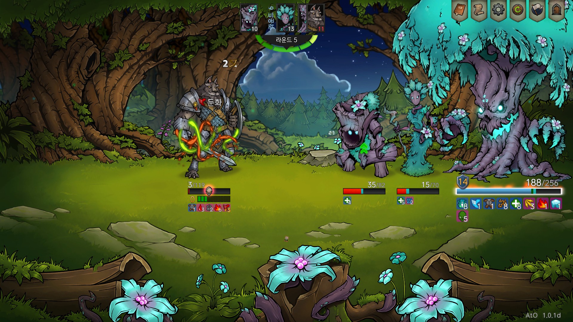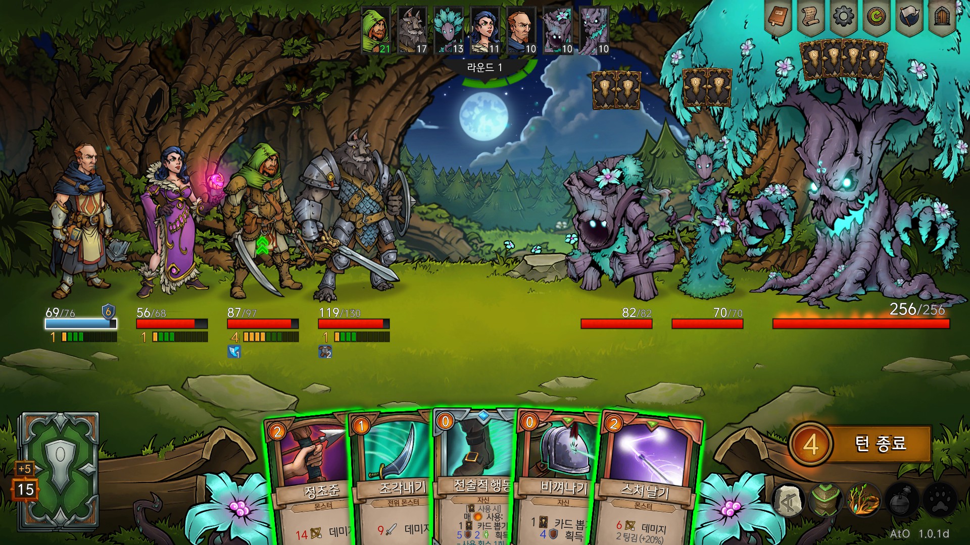 개쓔ㅣ벌 나무귀신! 내 파티가 10~20씩 오줌딜 넣었는데, 지들 턴에 바로 피 채우고, 광역딜 명치로 쑤셔 박는거 보면 약간 다키스트 던전 느낌이?