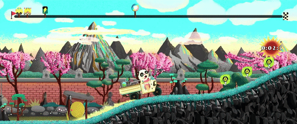 - 털북숭이 도로를 홀로 용감하게 주행하거나, 협력 모드 또는 챌린지 모드에서 두 명이 함께 달려보세요.