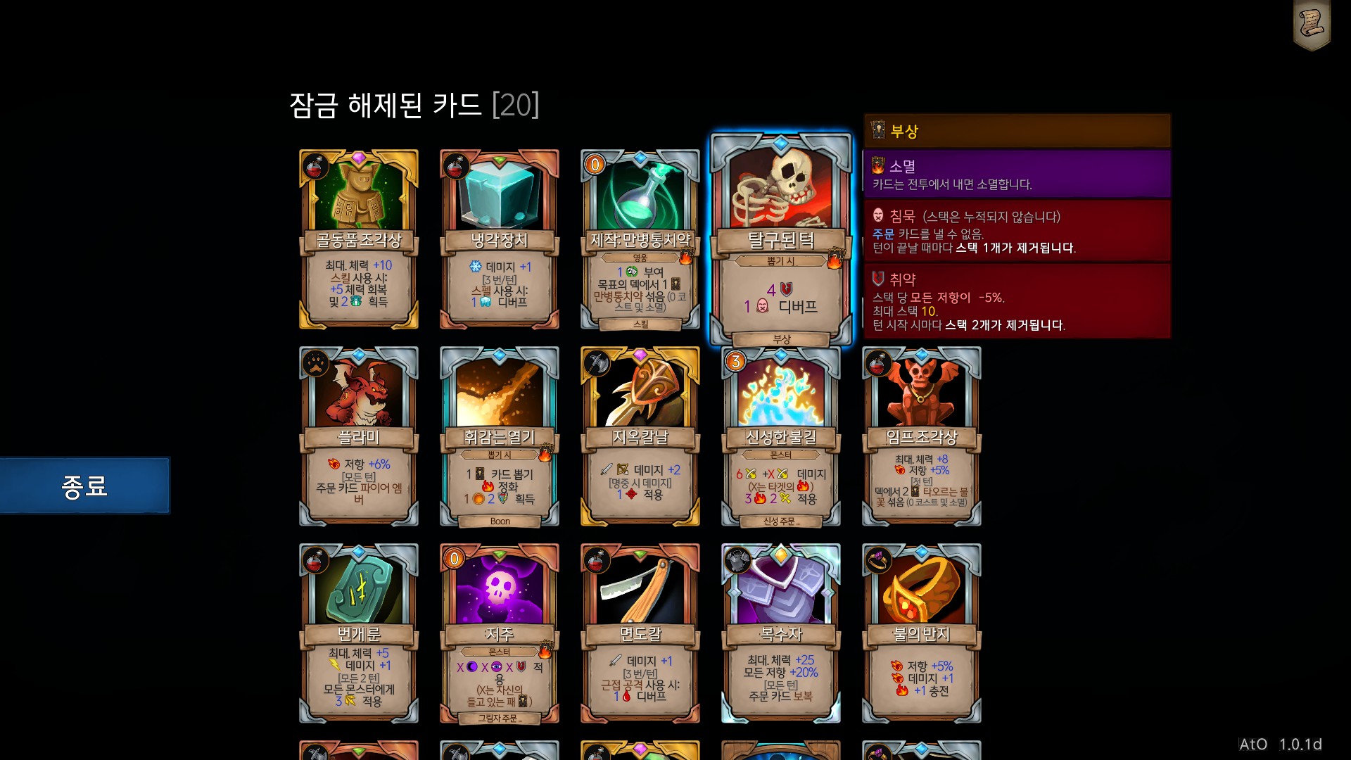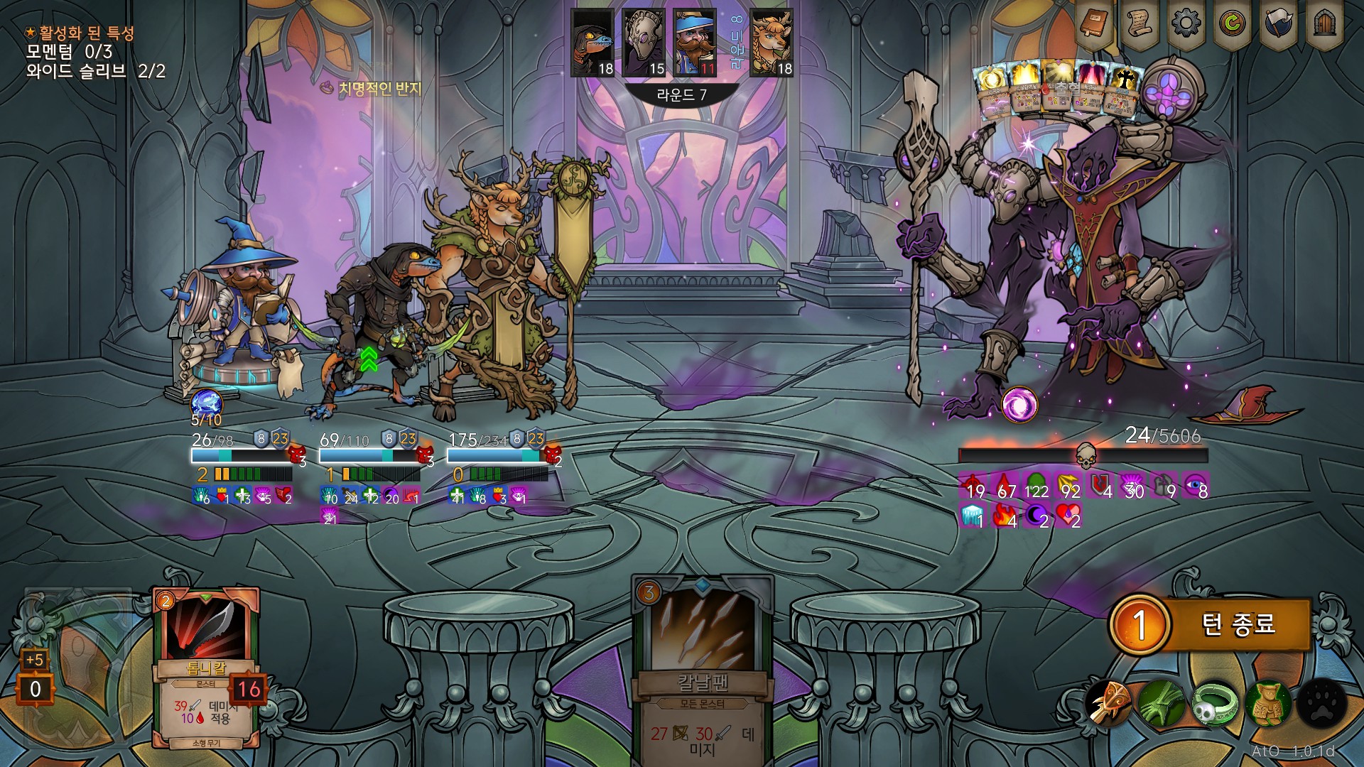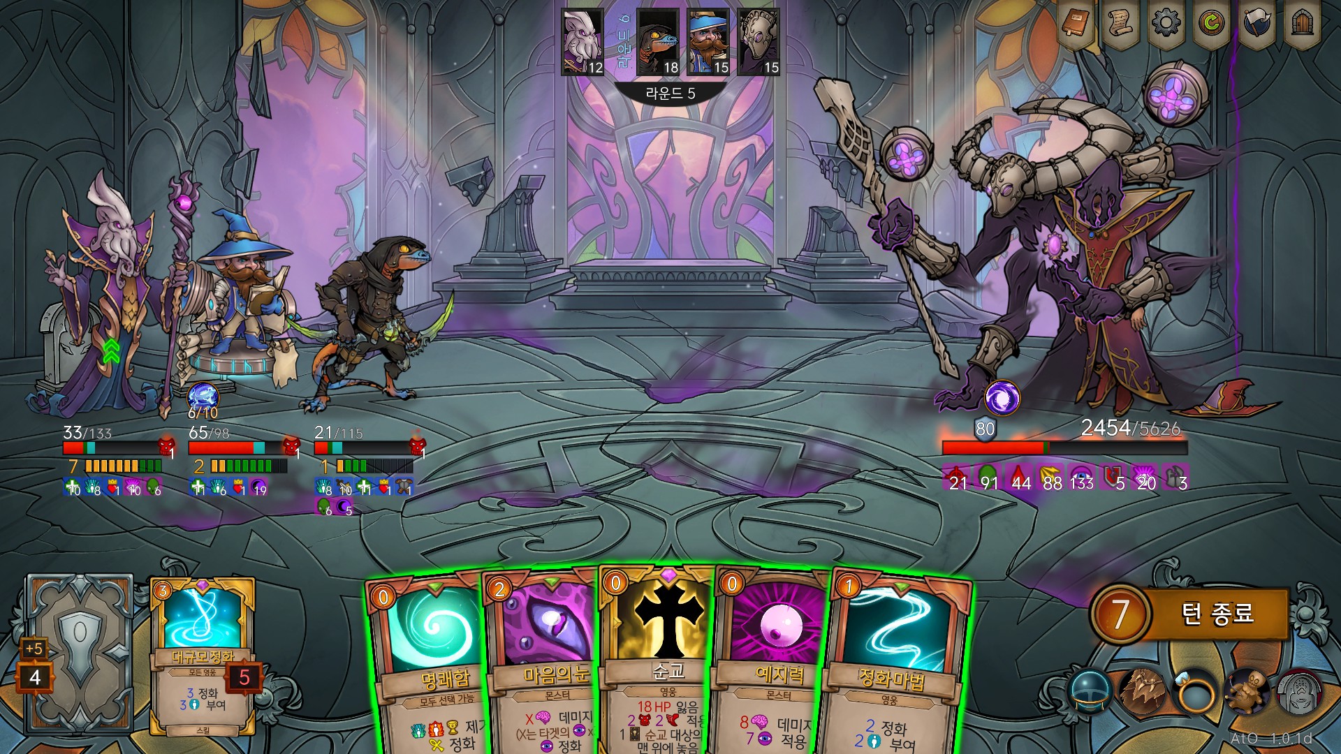 알고보니 순교카드를 사용하면 시전자는 체력 18을 잃고, 대상자와 시전자의 처형 디버프를 2턴 연장해주는 효과의 카드였다. 따라서 4턴 안에 보스를 죽일 필요도 없고, 피관리만 적당히 하면서 순교 카드를 사용하면 무난하게 클리어가 가능하다.