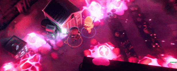 From Space를 싱글 모드로 플레이할 수도 있겠죠. 그만큼 용감하시다면요. 하지만 도와줄 친구를 초대하는 게 현명하다는 건 알고 계실 거예요. 온라인 플레이에서는 4인 분대를 만들 수 있습니다. 저렇게 많은 핑크색 해충을 상대하려면 인원은 많을수록 좋죠. 아, 그리고 분대로 플레이하면 당신이 얼마나 멋진지 전해줄 목격자도 생기지 않겠어요? 누이 좋고 매부 좋은 거죠.