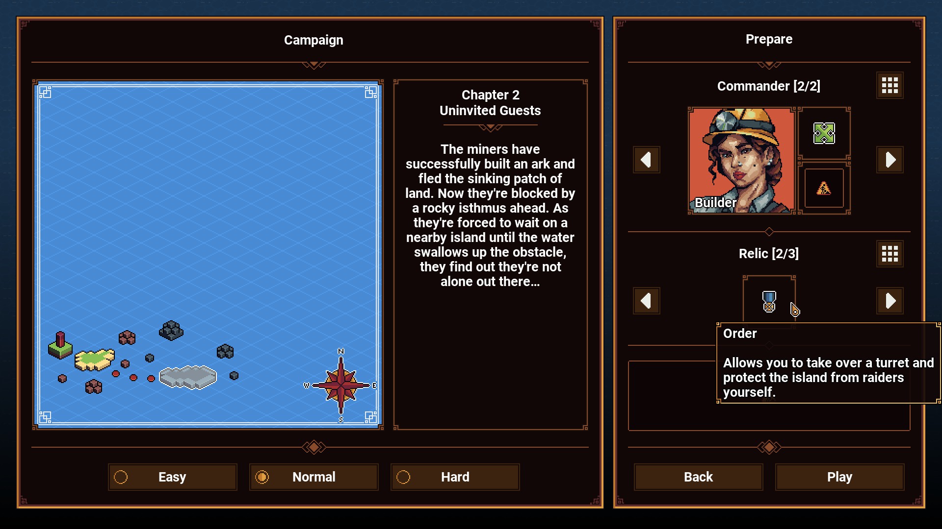 플레이어는 두명의 커맨더 중 하나를 선택할 수 있는데, 저마다 특수능력과 유물에서 차이가 난다.
