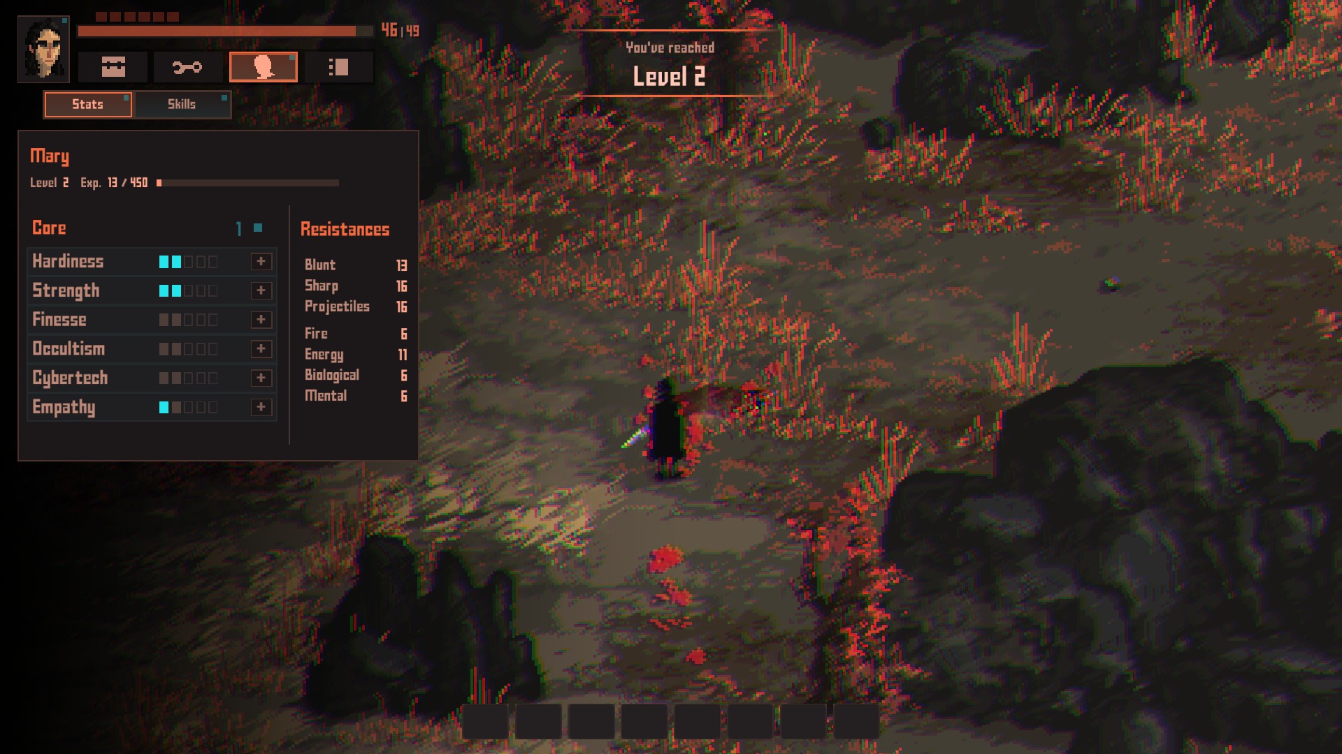 레벨업 하면 보게 되는 스테이터스 창, 게임 시작 전에 찍었던 것과 아무런 차이가 없습니다.