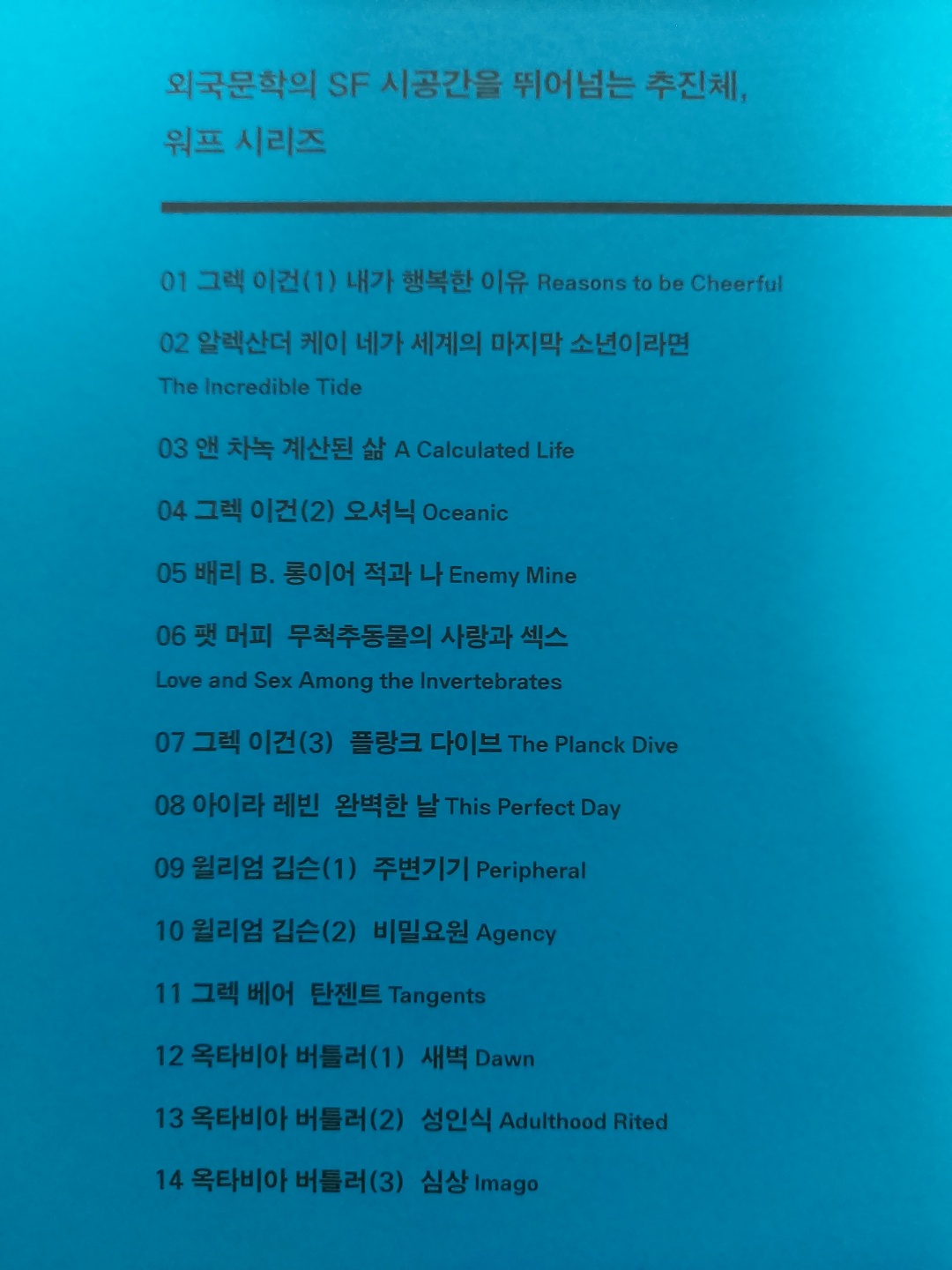 물론 총서 목록이 순서대로 나올 거라는 보장은 없어서, 갑자기 다 때려치우고 옥타비아 버틀러로 워프해버릴 수도 있습니다.